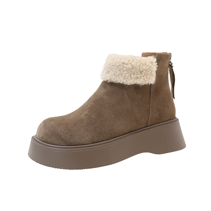 羊羔毛厚底雪地靴女2024新款小个子增高百搭加绒复古短靴冬季棉鞋