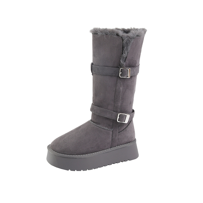 灰色两穿雪地靴女2025冬季新款厚底增高加绒加厚防滑长筒雪地棉鞋