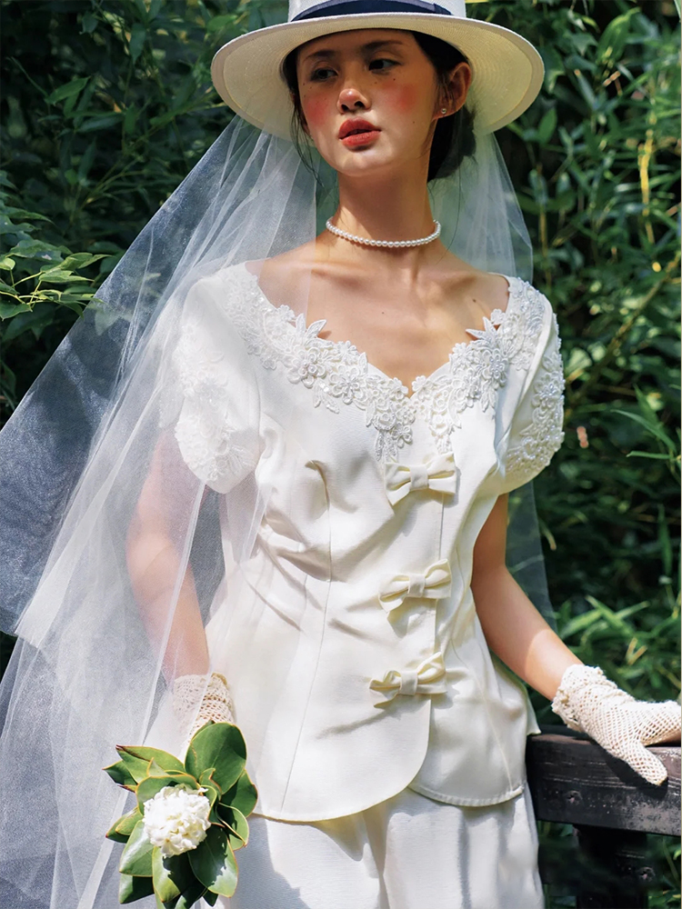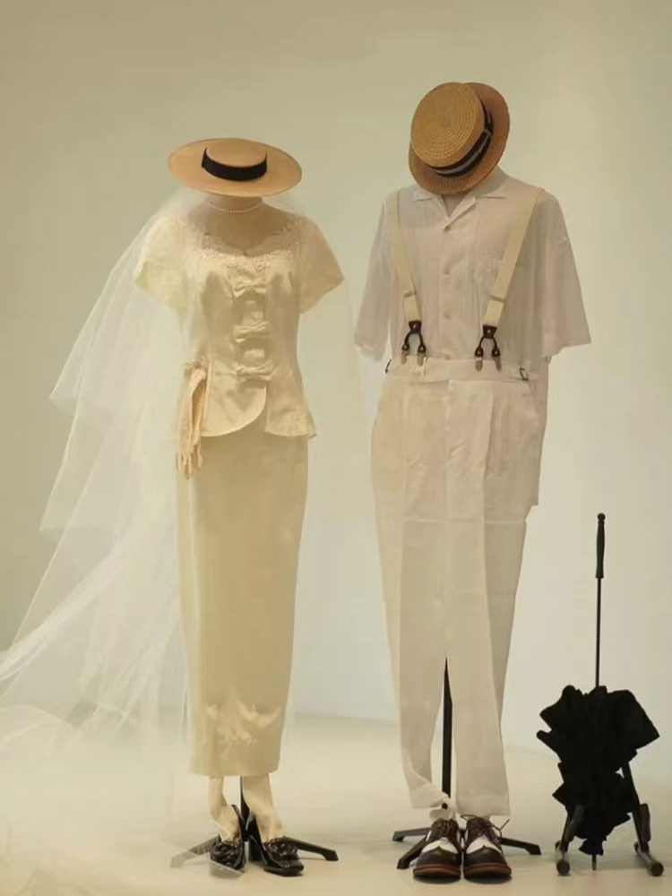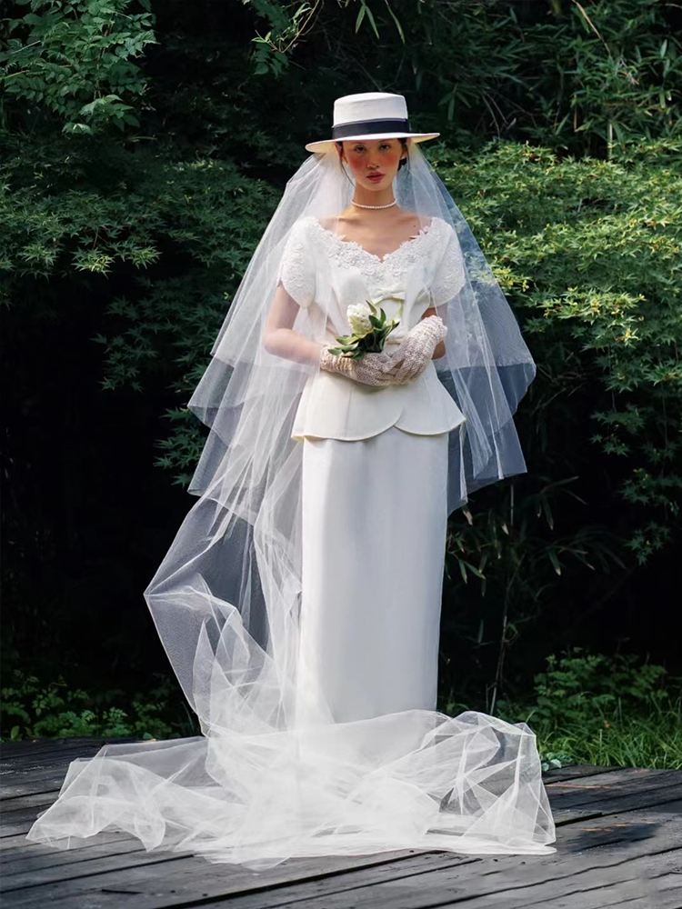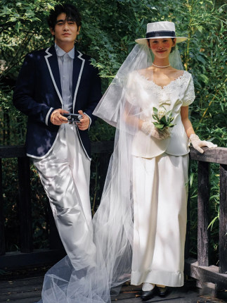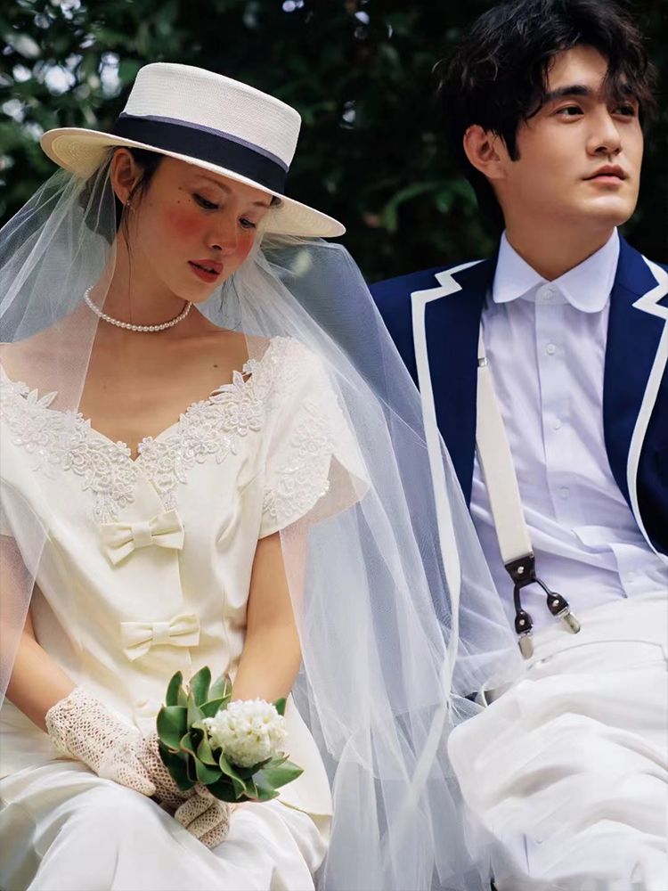 影楼复古主题轻纱2024新款旅拍法式轻婚纱情侣拍照摄影复古礼服