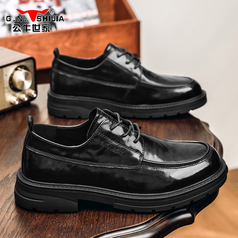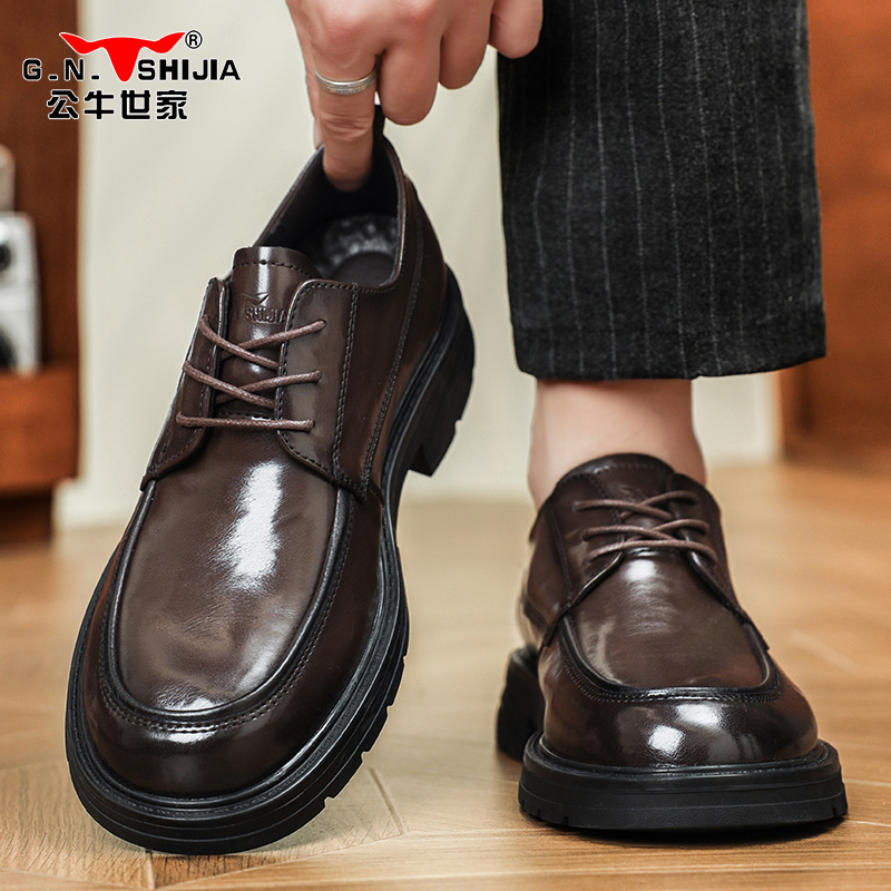 公牛世家皮鞋男秋季商务正装新款休闲男鞋软底新郎结婚增高西装鞋