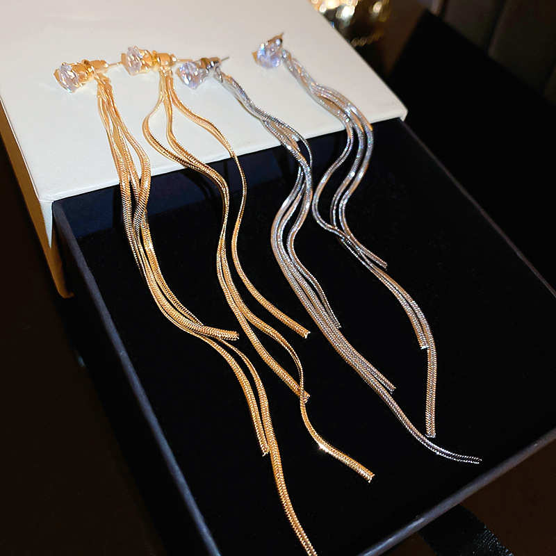 锆石长款流苏耳环一款两戴耳钉女个性冷淡风耳钉时尚轻奢气质耳饰