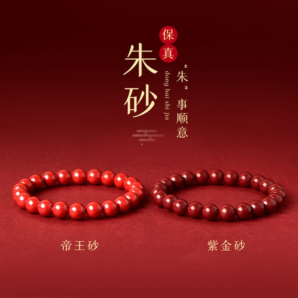 朱砂手串女男帝王砂东海水晶玛瑙翡翠玉石散珠子红手镯紫金砂手链