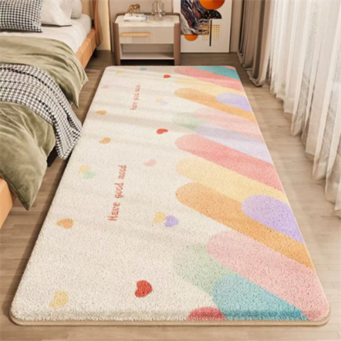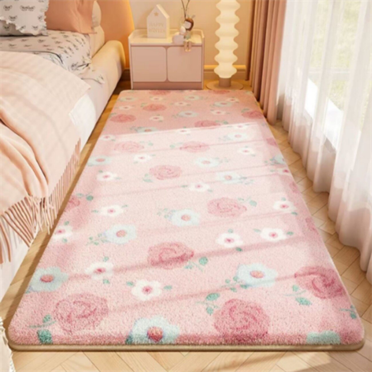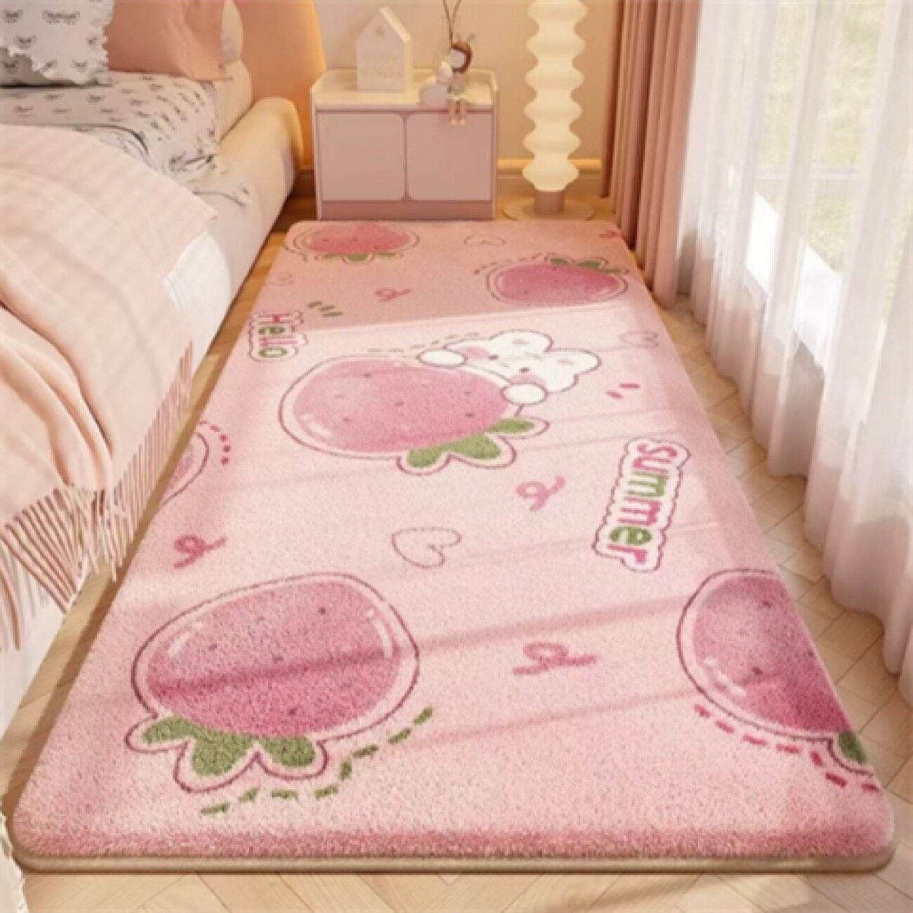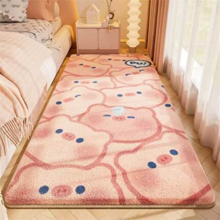 卡通可爱仿羊绒床尾垫床边毯粉色小熊毛绒地毯居家卧室加厚保暖