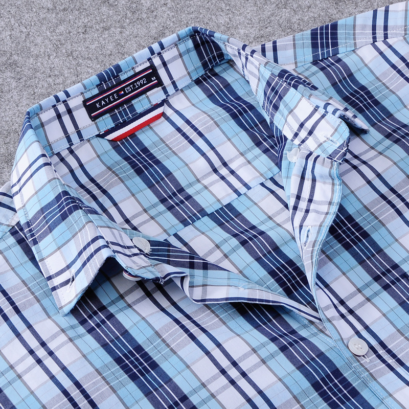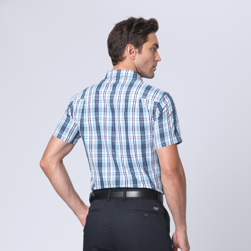 【特惠款】嘉意夏季短袖修身衬衣中年男士休闲格纹衬衫薄A59026