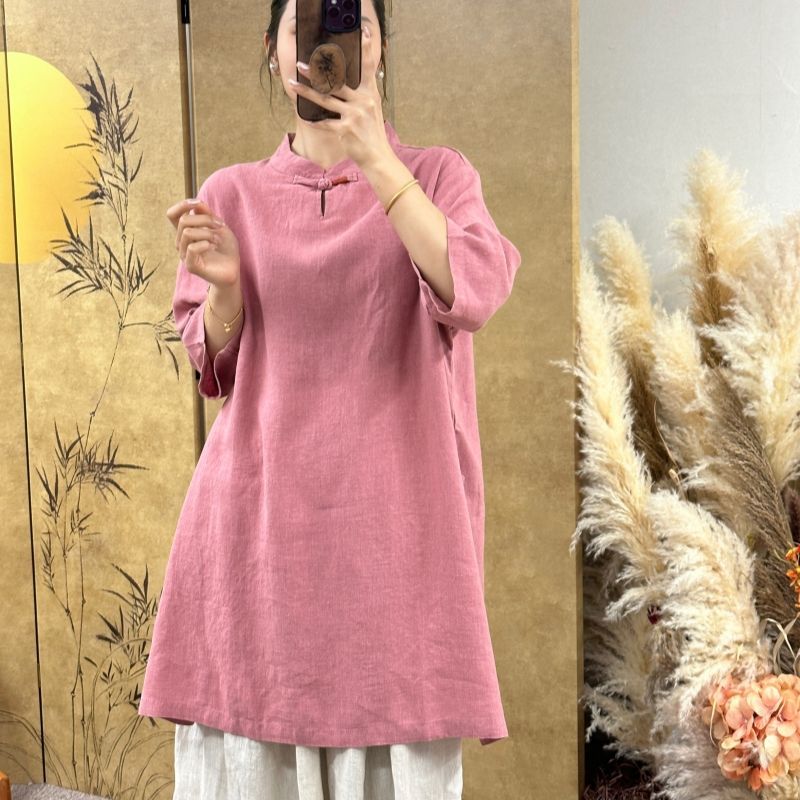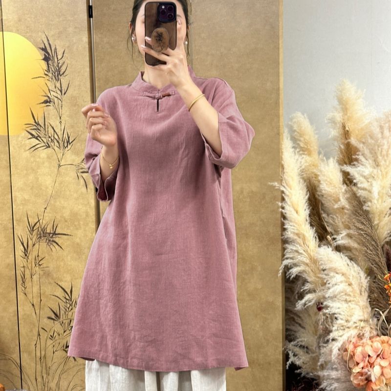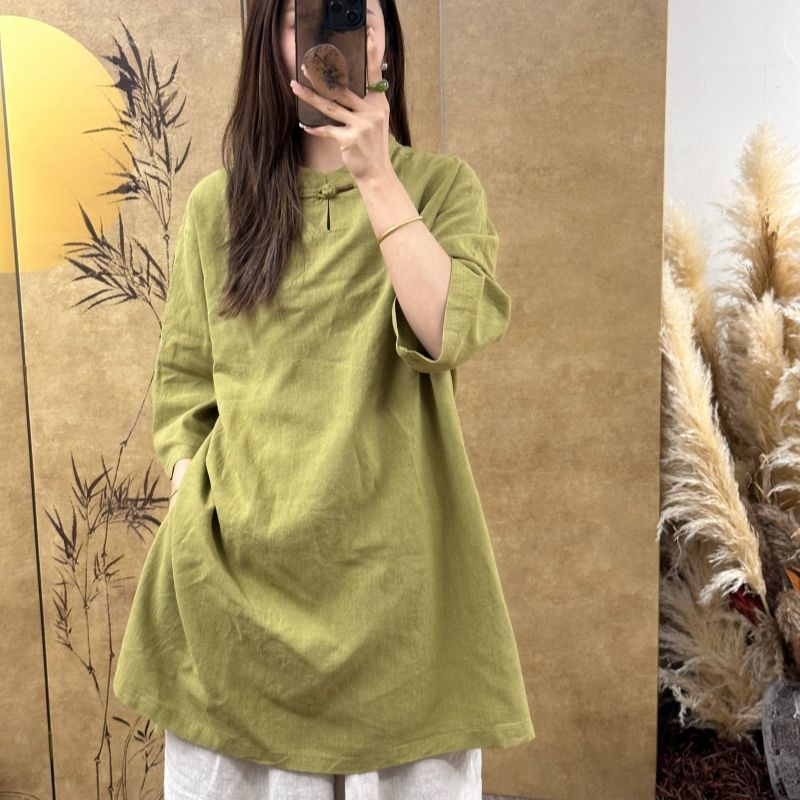 中国风禅意中长款打底衫