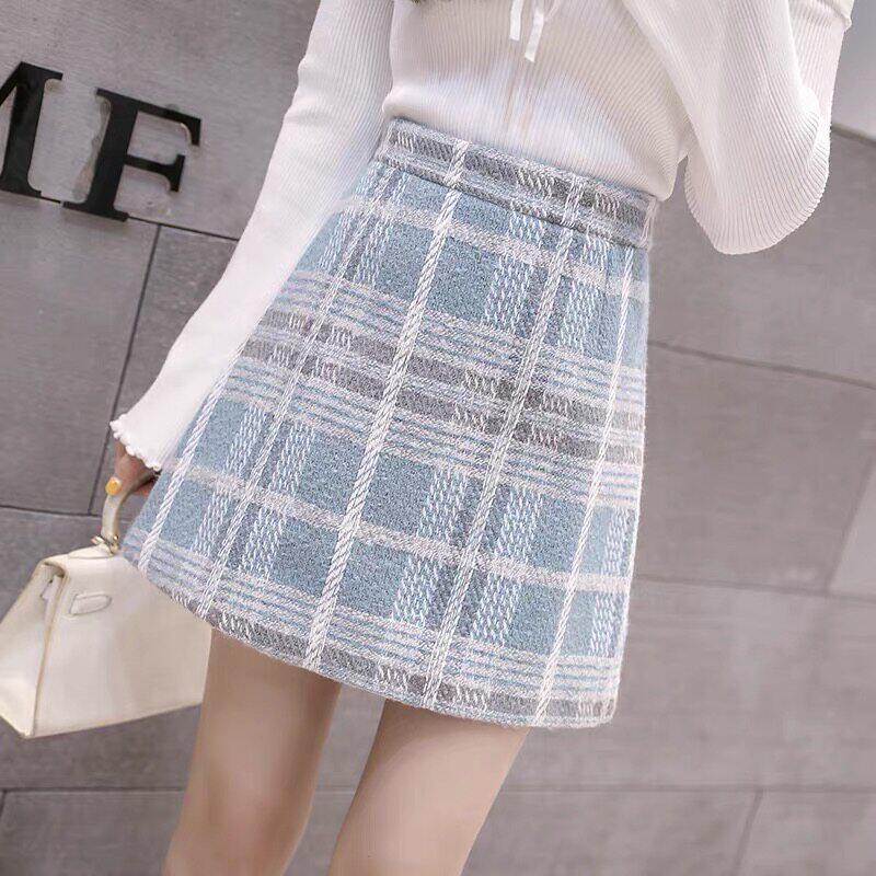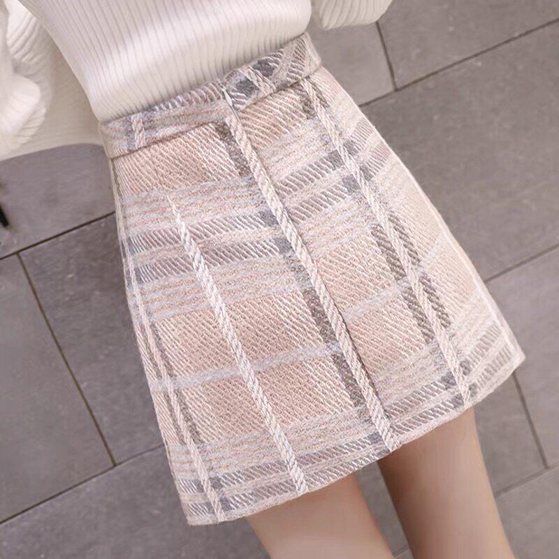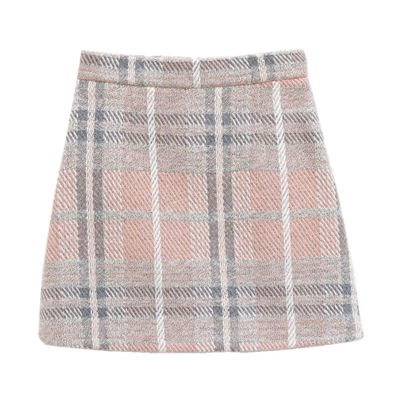 毛呢半身裙女春季新款时尚气质高级感包裙高腰显瘦a字裙格子短裙