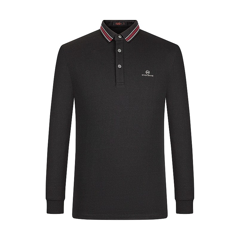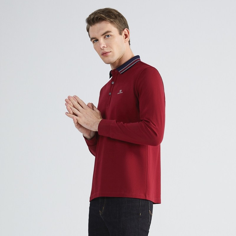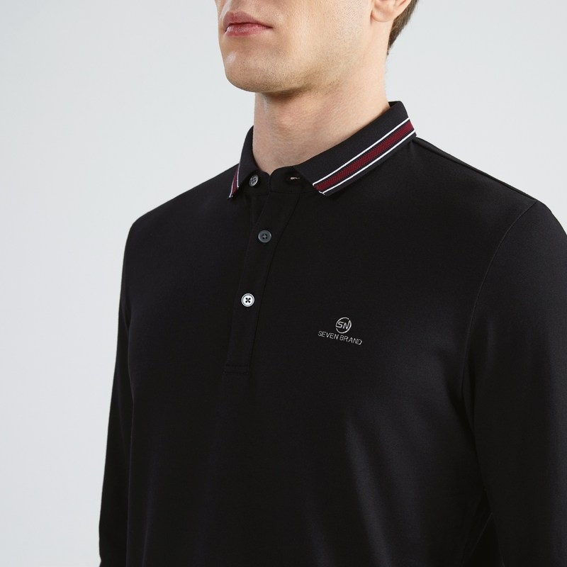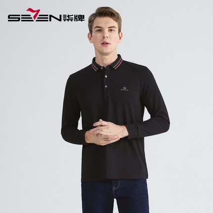 【火山岩】柒牌polo衫男清仓长袖秋冬厚款撞色提花商务休闲保罗衫