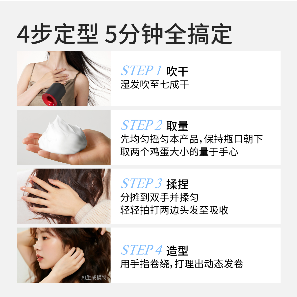 菲灵专业耀型哑光纹理泡泡摩丝 羊毛卷弹力塑型不僵硬护卷弹力素