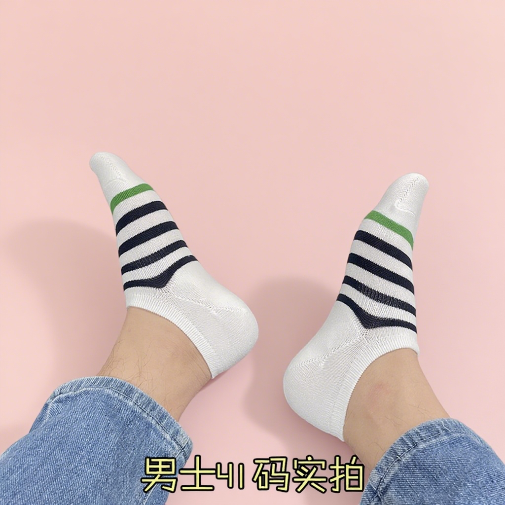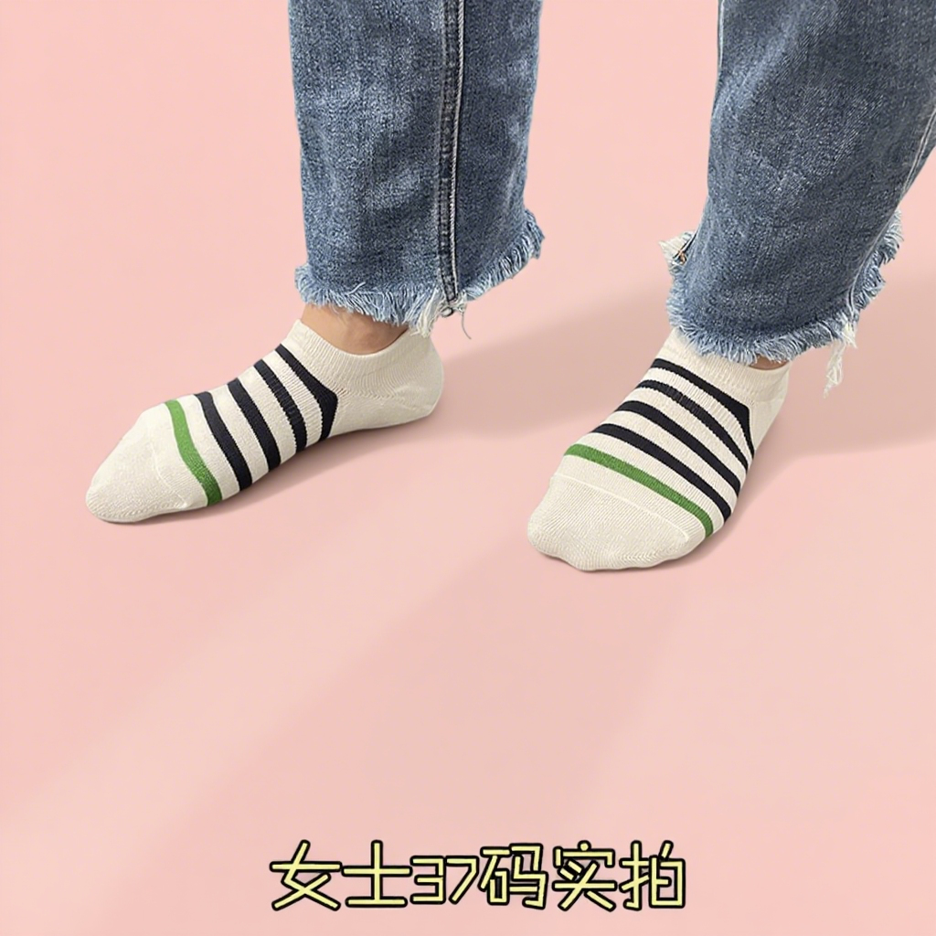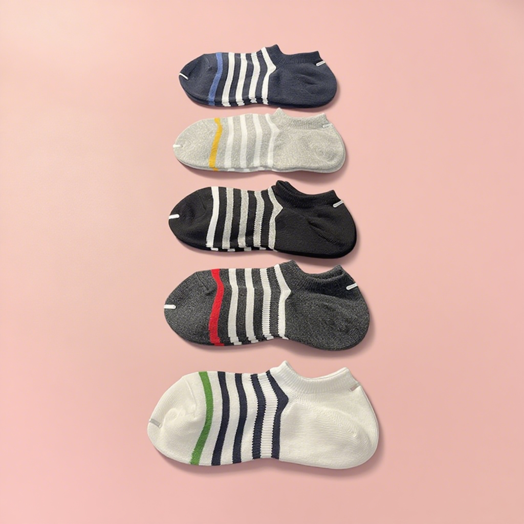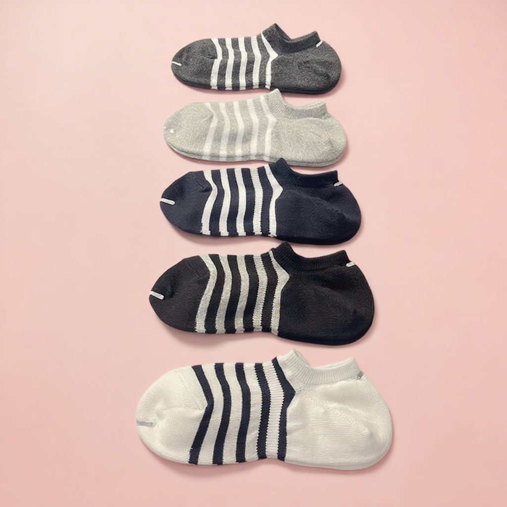 五双装良品纯棉精品袜男女条纹浅口隐形短船袜防臭吸汗耐穿不起球