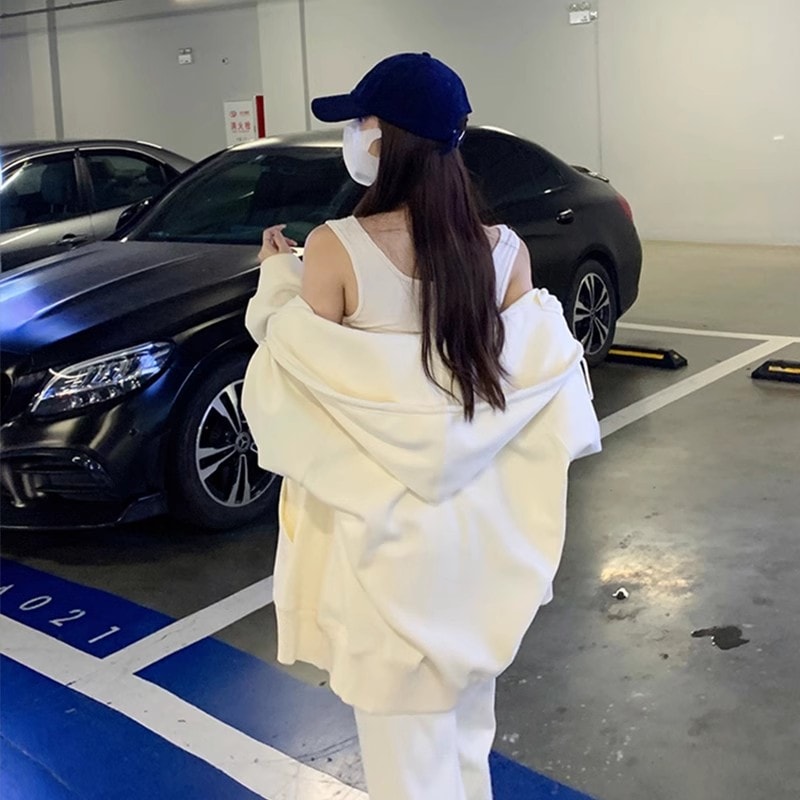 初秋黑色学生卫衣外套女春秋款2025早秋季新款爆套装初中生秋装薄