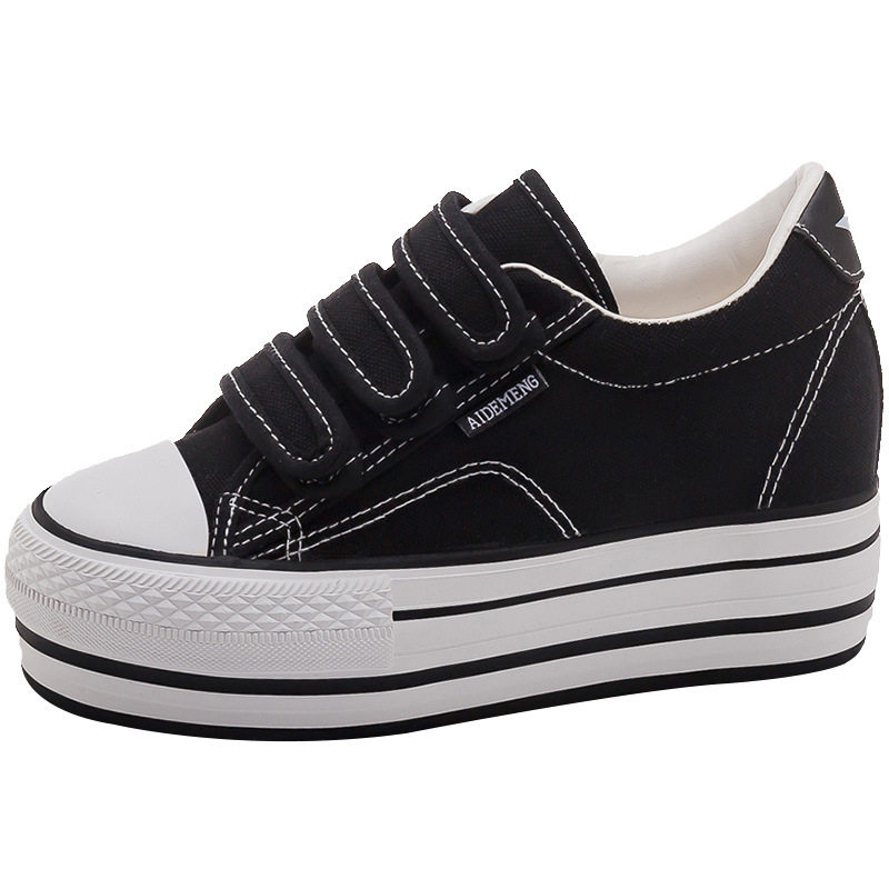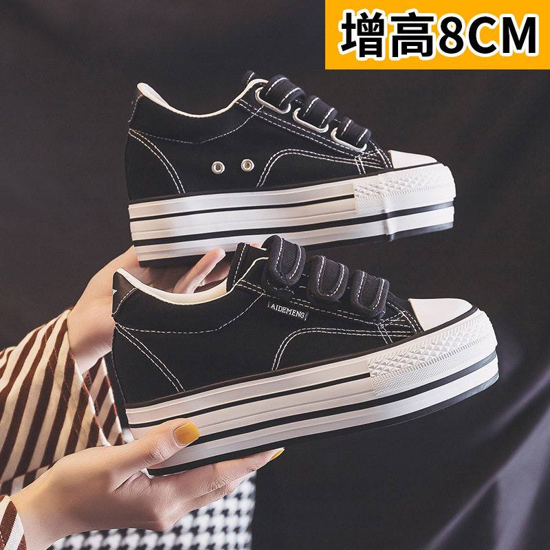 内增高8厘米帆布鞋女鞋2024秋季新款厚底魔术贴韩版懒人学生板鞋