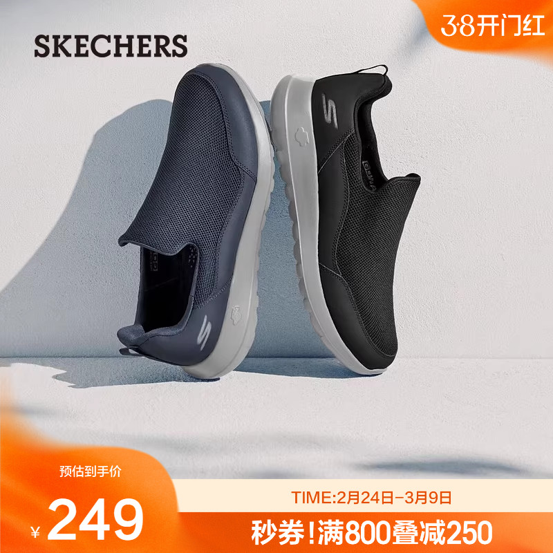 Skechers斯凯奇男中老年爸爸鞋一脚蹬健步鞋懒人鞋厚底运动休闲鞋