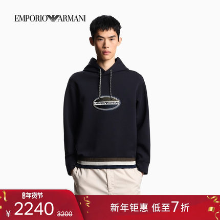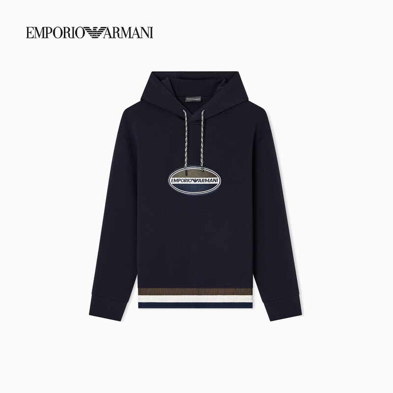 EMPORIO ARMANI/阿玛尼冬季新款男连帽套头宽松刺绣运动休闲卫衣
