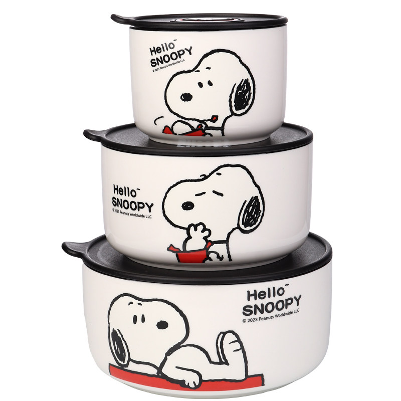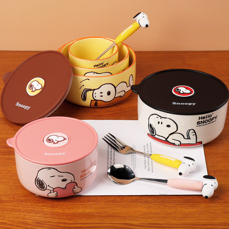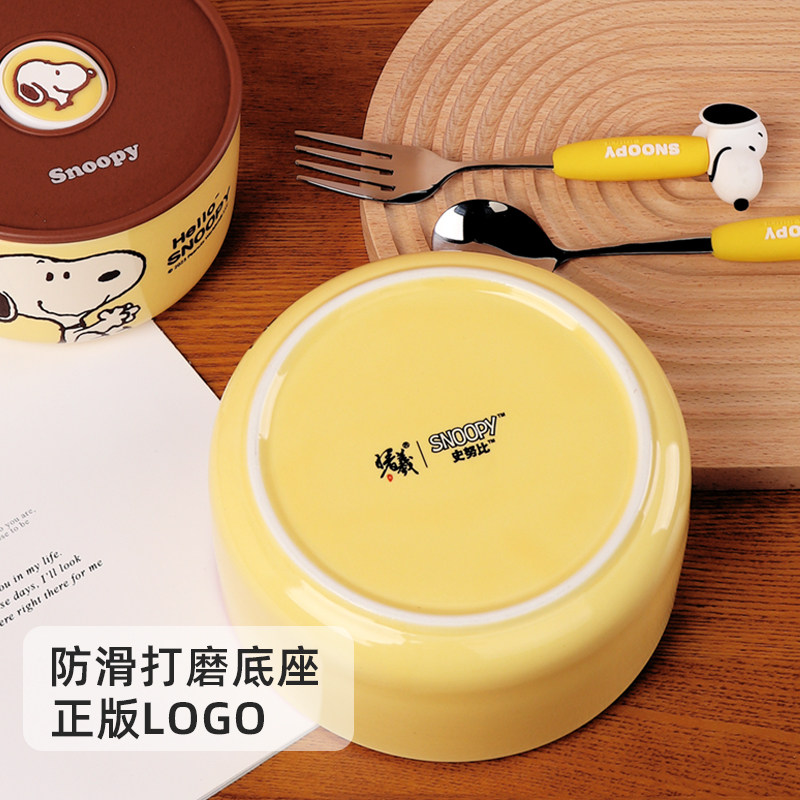 史努比保鲜碗密封带盖陶瓷饭盒微波炉加热专用密封盒上班族便当盒