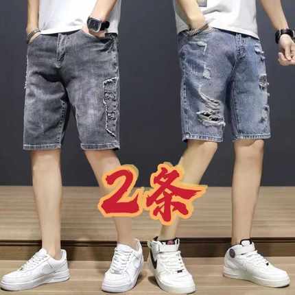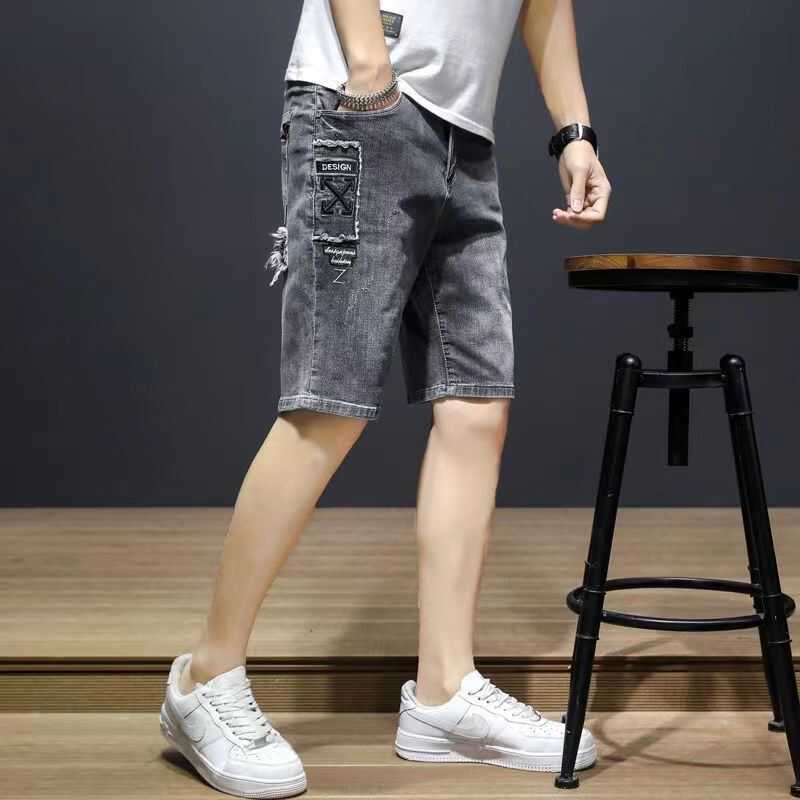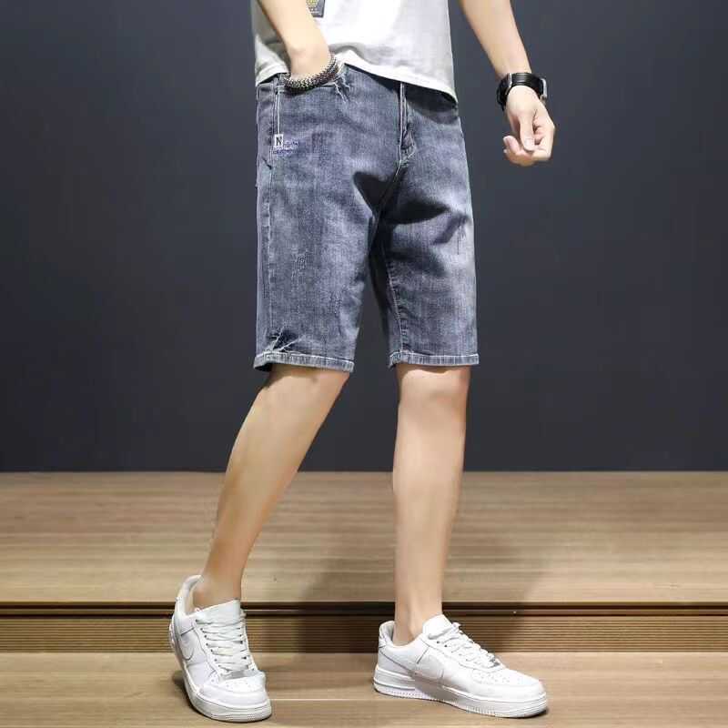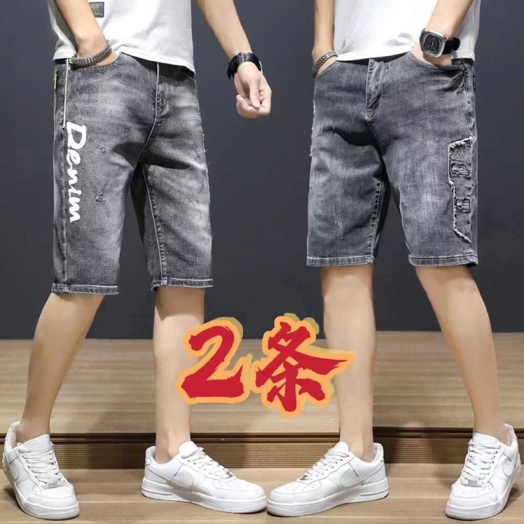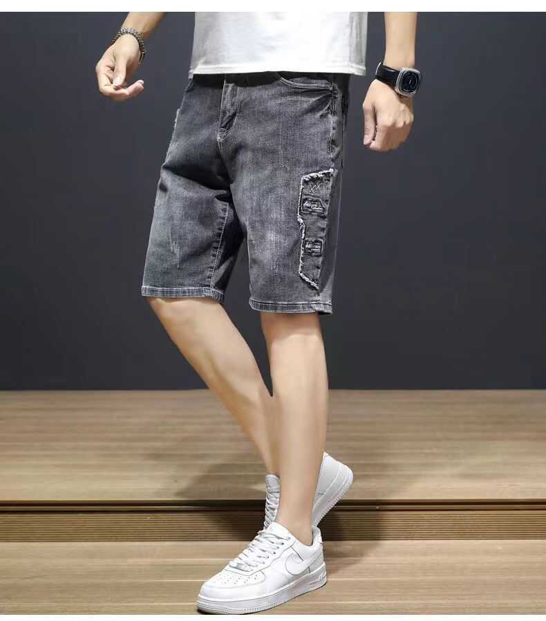 夏季薄款牛仔短裤男士弹力灰色宽松5五分中裤7七分烟灰裤子男马裤