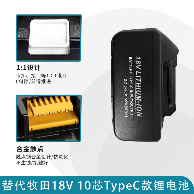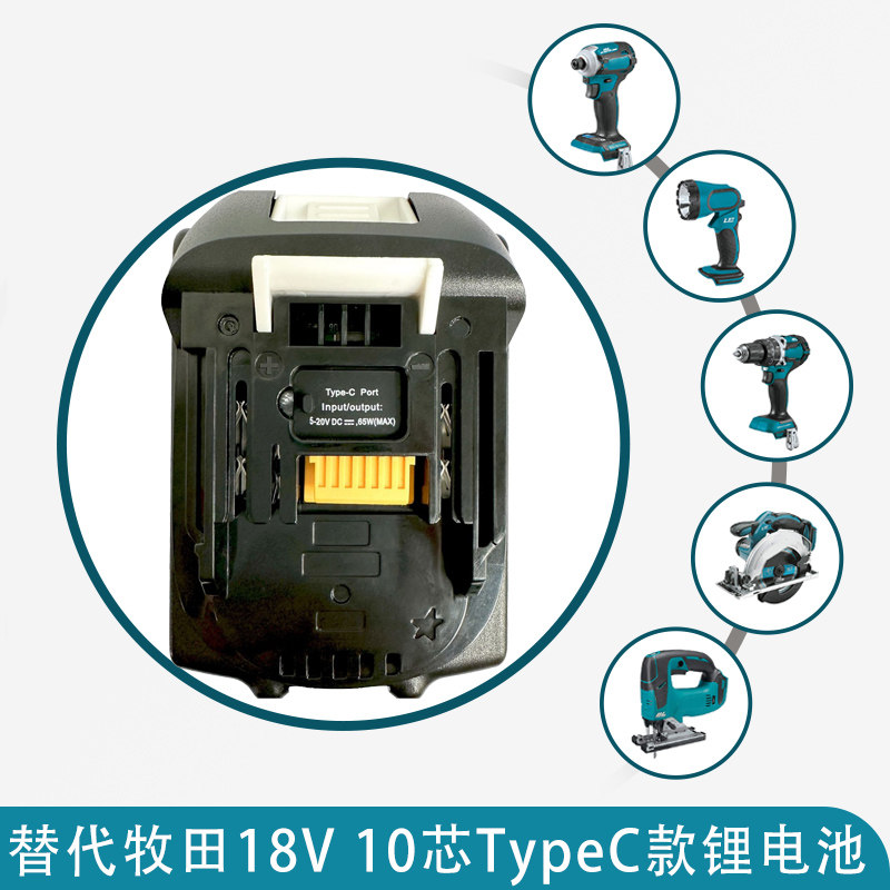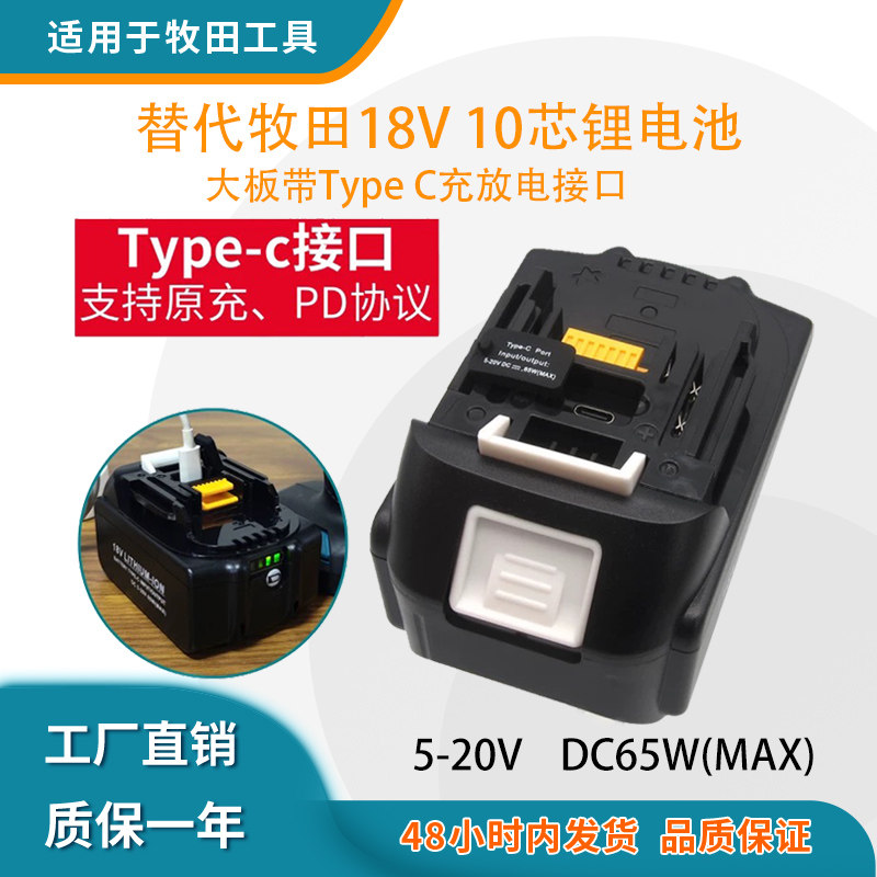 适用Makita牧田大板18V锂电池带Type-C BL1830手电钻电动工具电池