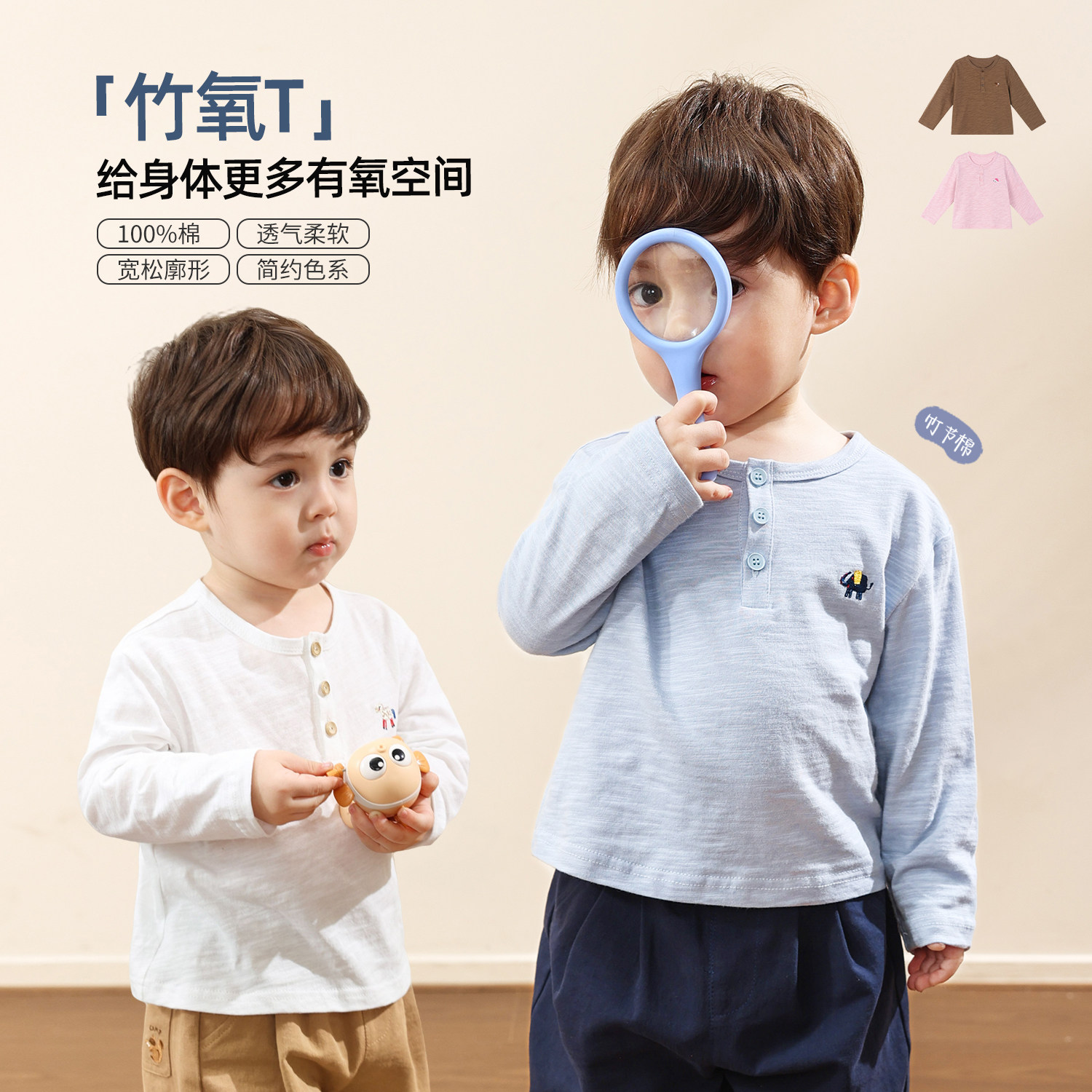 【竹节棉】小O爸婴童男女宝宝长袖打底衫2025冬款柔软透气纯棉T恤