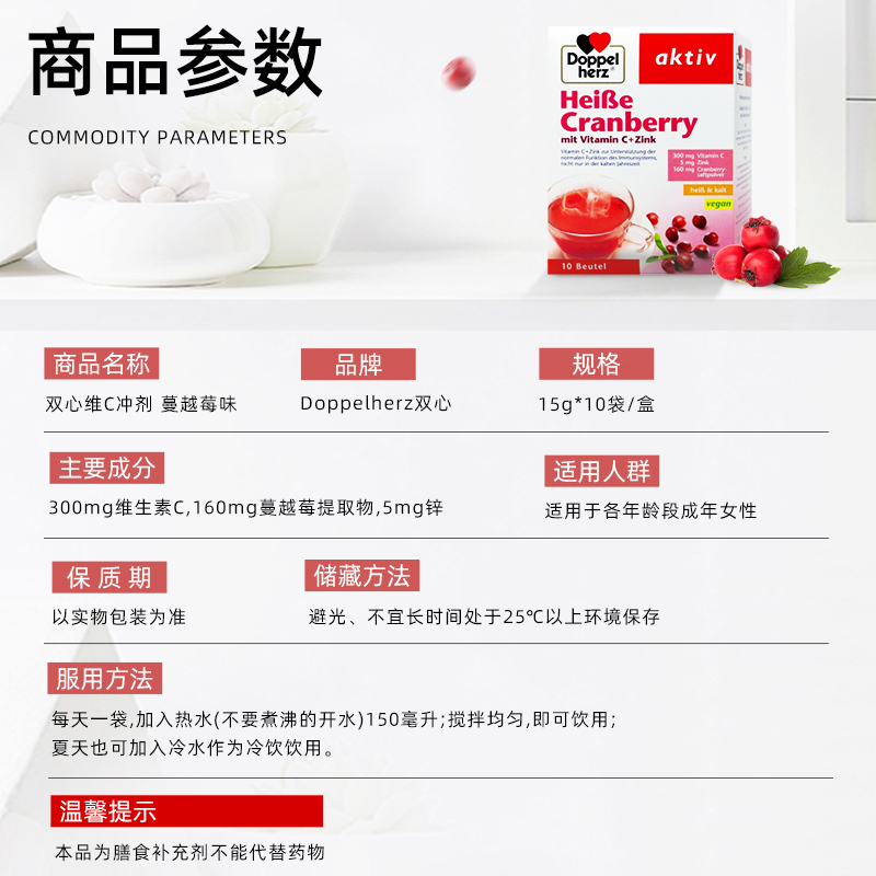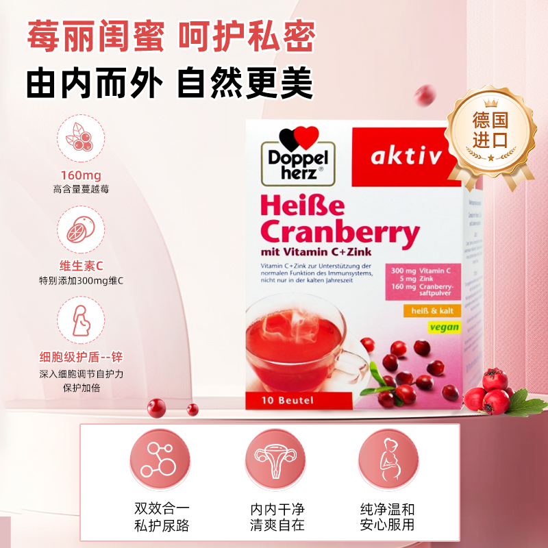 【自营】德国双心蔓越莓粉冲剂锌维生素vc饮花青素女性私处保健品