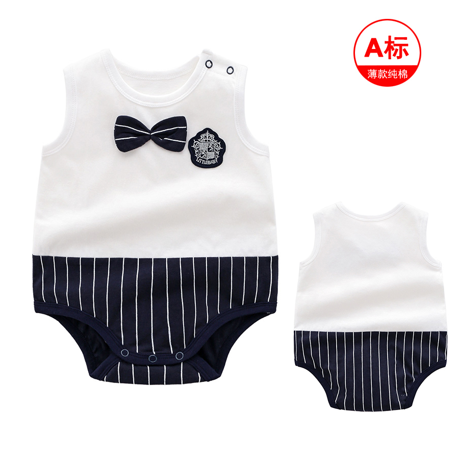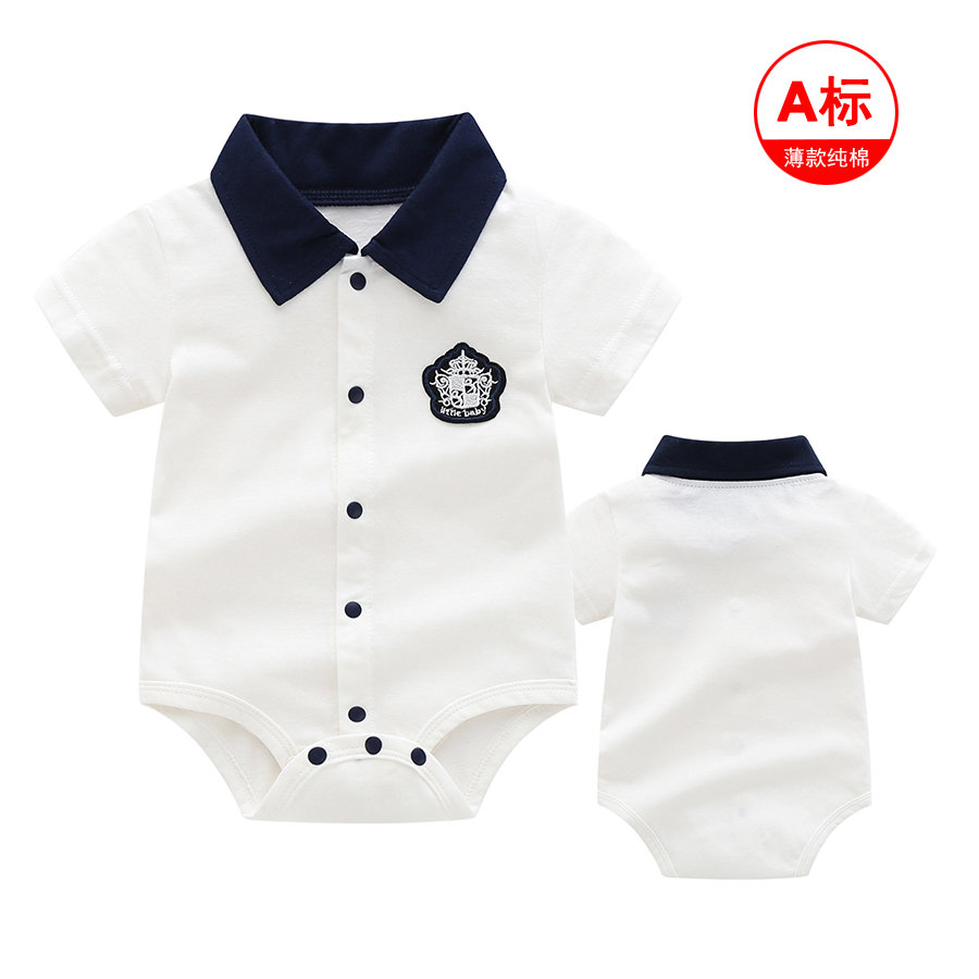 男宝宝三角连体哈衣夏季婴儿新生包屁衣服满月短袖夏装6个月3纯棉
