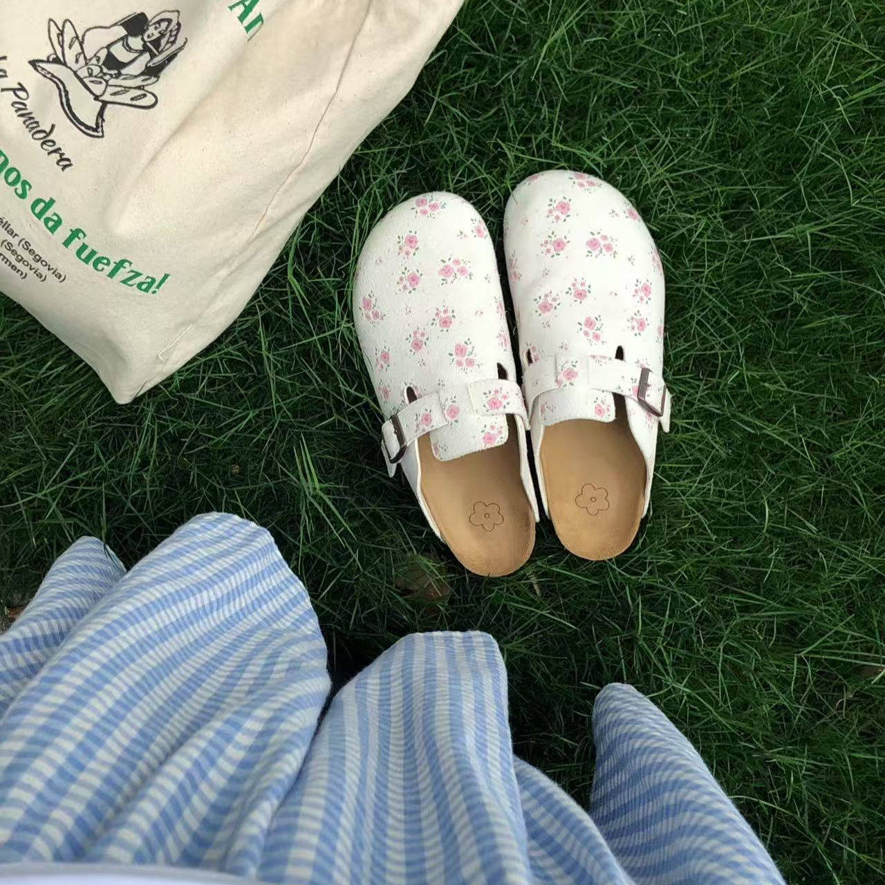 猫与沙发/小碎花勃肯鞋时尚包头半拖通勤鞋百搭懒人外穿凉拖鞋子