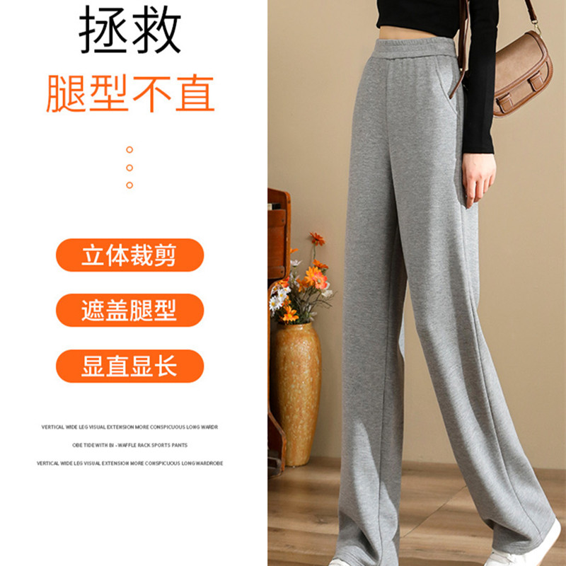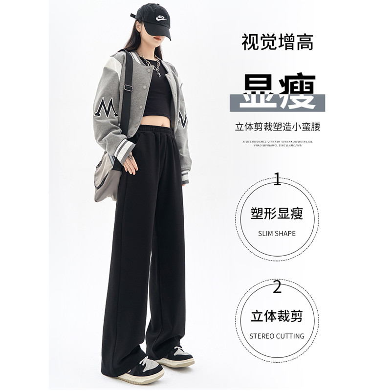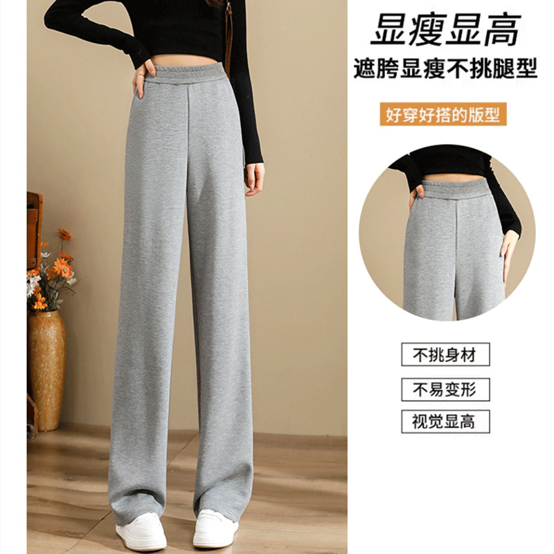 秋冬加绒加厚遮肉显瘦运动阔腿裤女宽松休闲小个子直筒长裤子卫裤