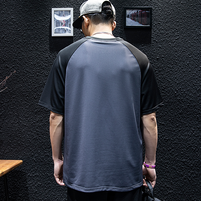 网格冰丝短袖t恤男夏季宽松潮牌大码半袖胖子撞色圆领速干体恤潮