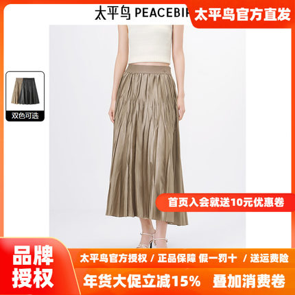 太平鸟 肌理感压褶半身裙2025秋季新款女士气质长裙高腰伞裙裙子