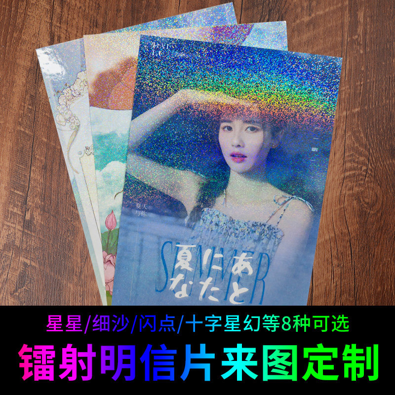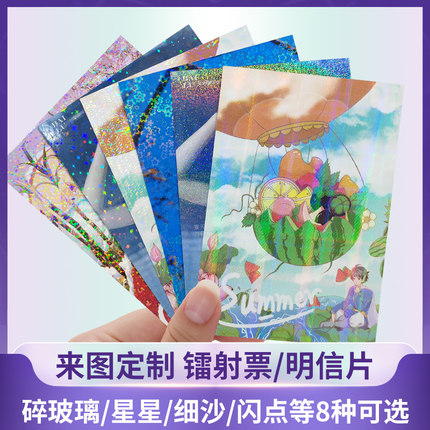 镭射明信片方卡片来图定制打印满天星碎玻璃覆膜明星校园个性闪卡