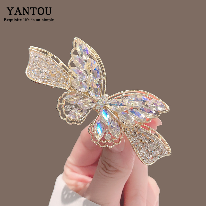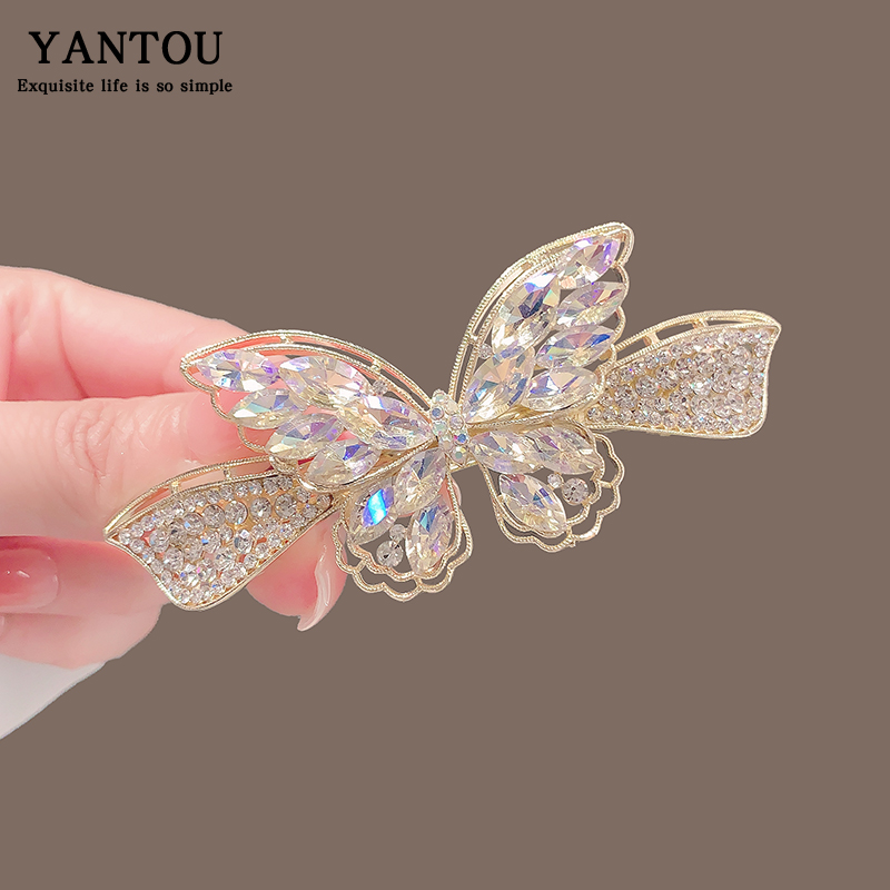 韩式优雅蝴蝶弹簧夹时尚水钻发夹后脑勺顶夹发夹横夹马尾夹一字夹