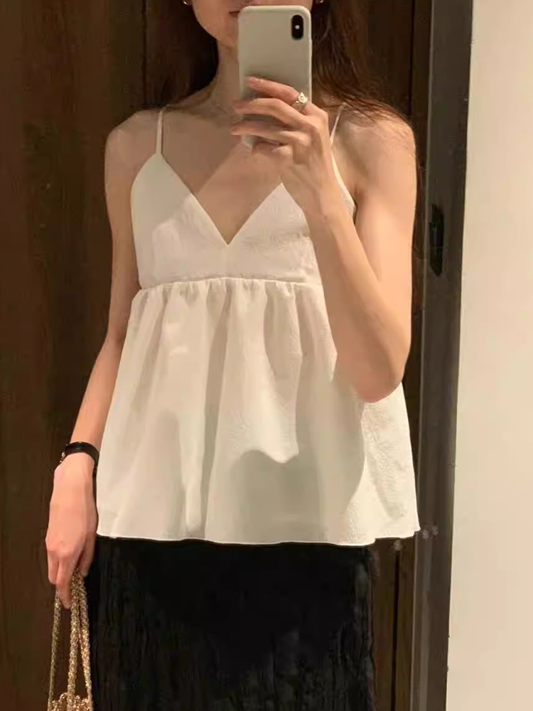 韩国chic夏季法式气质V领露背系带设计感宽松休闲背心吊带上衣女