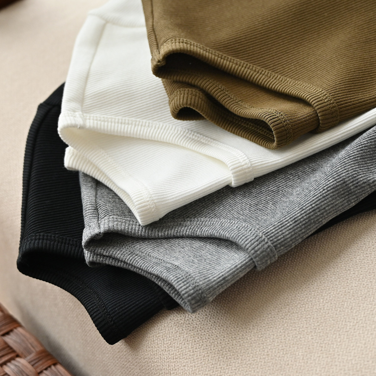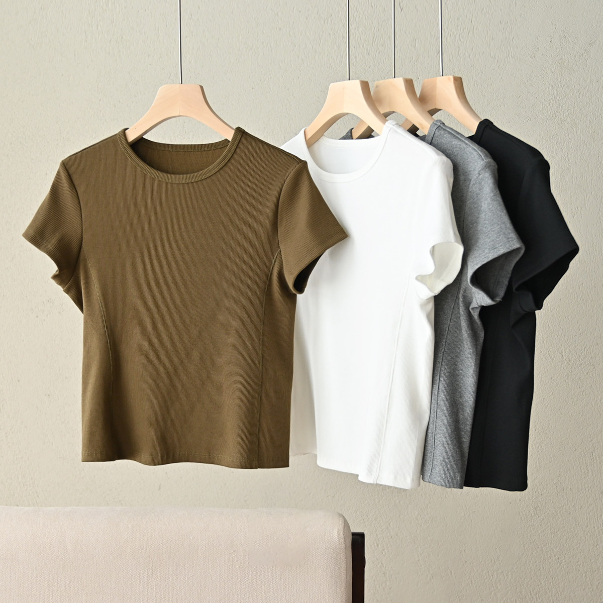 基础款女士圆领罗纹短袖修身T恤