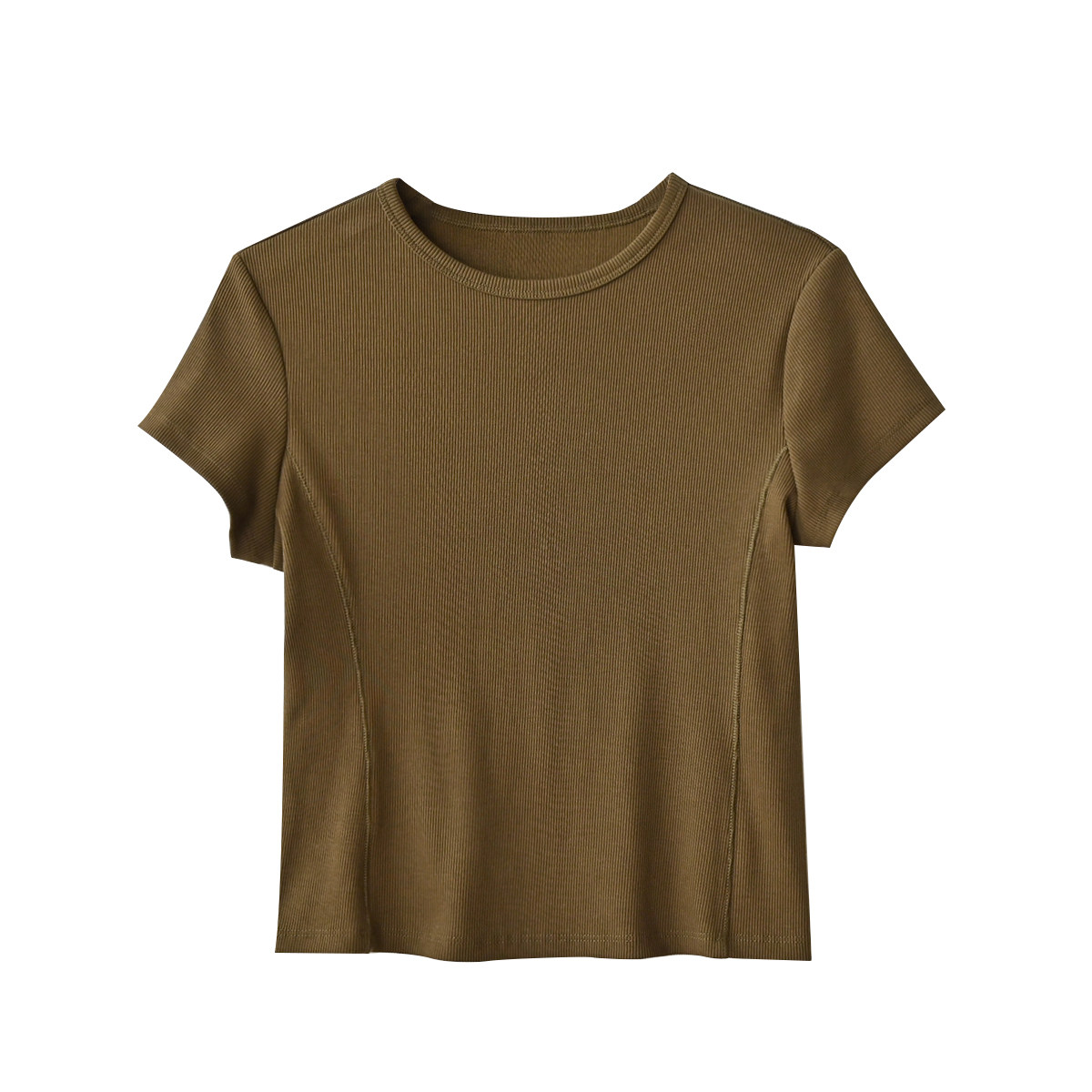 短款 女士罗纹圆领短袖 修身显瘦T恤衫 百搭纯色上衣 夏款 女装