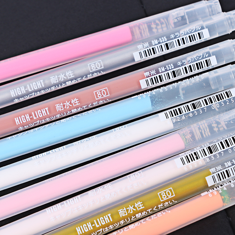 东米高光粉彩中性笔大容量耐水性笔diy相册黑卡纸手账专用彩色笔