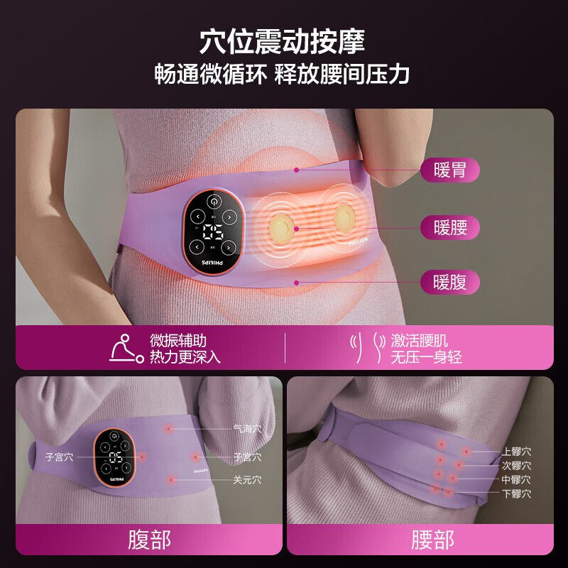 飞利浦按摩腰带暖腹暖宫热敷按摩仪缓解姨妈痛经按摩腰带女生礼物