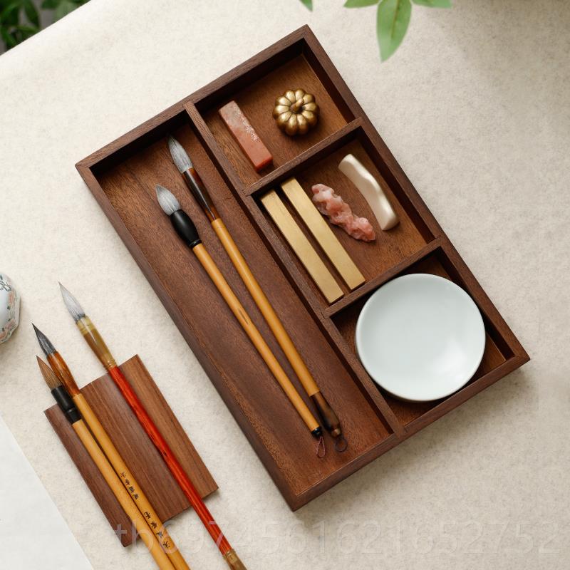 新款胡桃木文盘托茶盘环 收榫盘卯保无味文房四宝砚台收纳盘纳盒