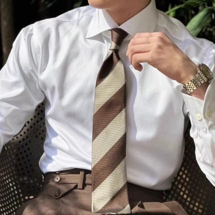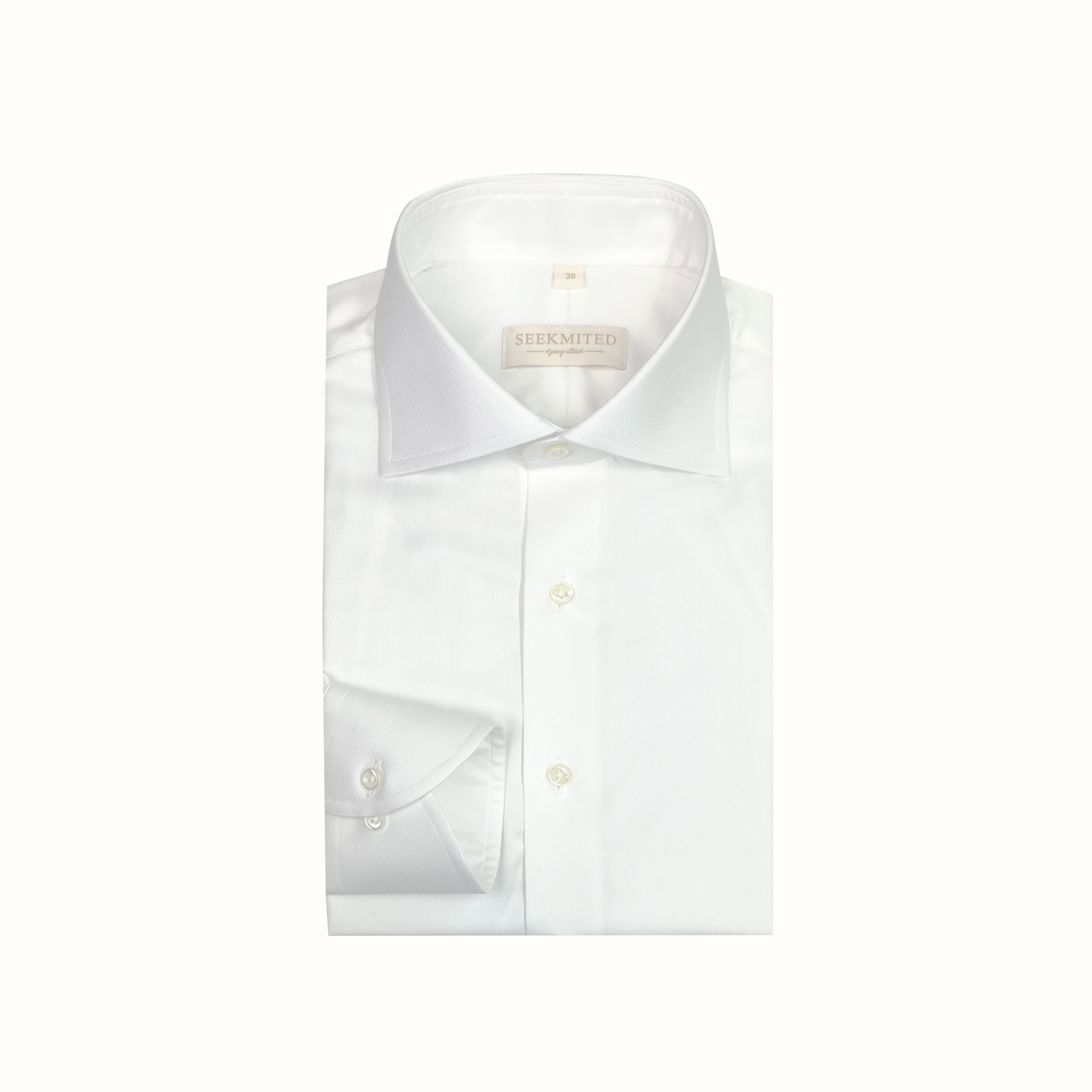 SEEKMITED意式衬衫大八领瀑布袖白色人字纹纯棉男士休闲长袖衬衣