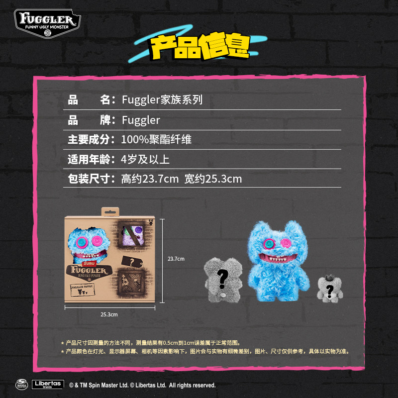 Fuggler官方正版萌牙怪兽家族系列毛绒玩偶丑萌搞怪潮玩公仔玩具