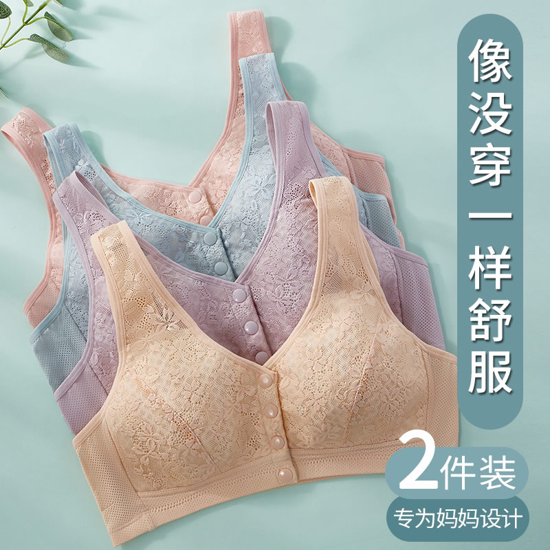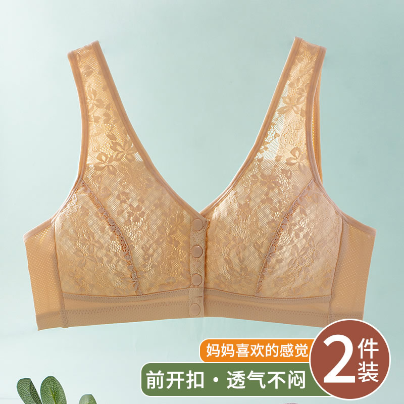 妈妈内衣胸大显小2025新款中老年女士前扣聚拢防下垂蕾丝文胸薄款