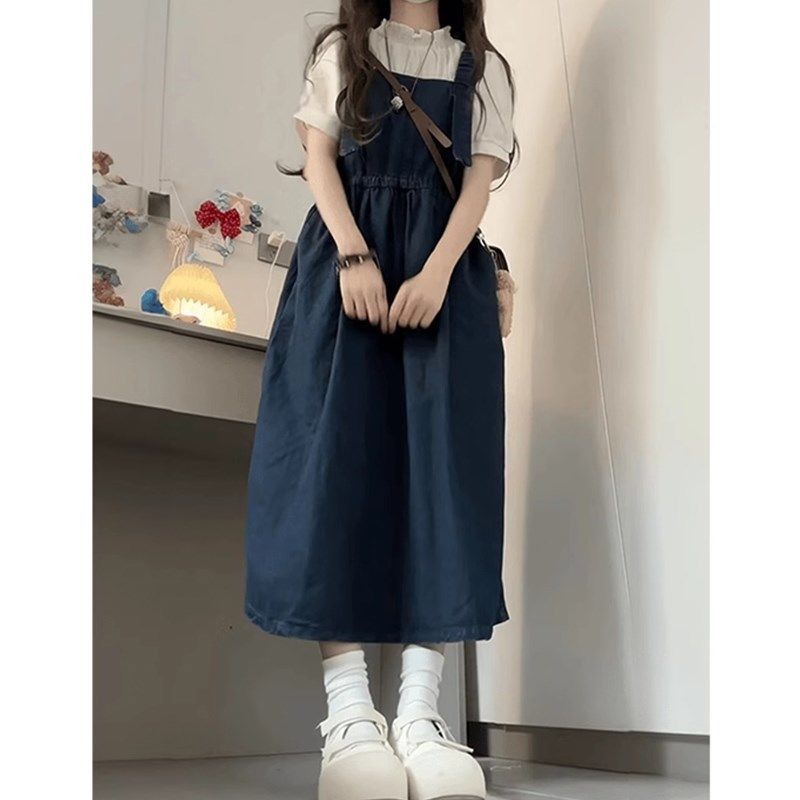 女大童牛仔连衣裙套装夏季初中高中学生韩版宽松R甜美小个子两件