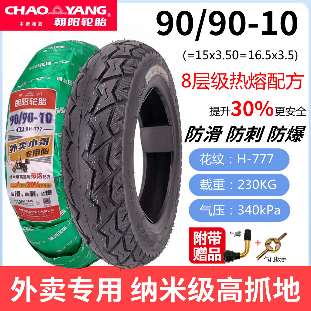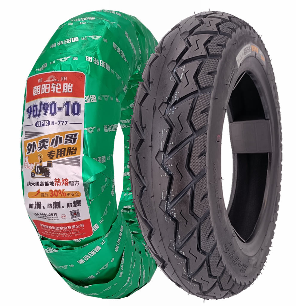 朝阳热熔轮胎90/90-10真空胎防刺电动摩托车缺气保用防爆外卖外胎