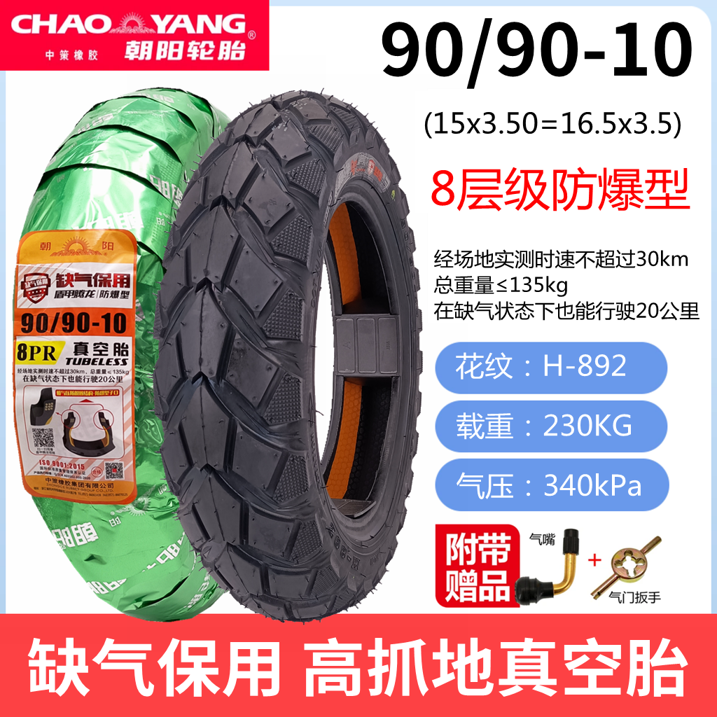 朝阳90/90-10缺气保用防爆轮胎