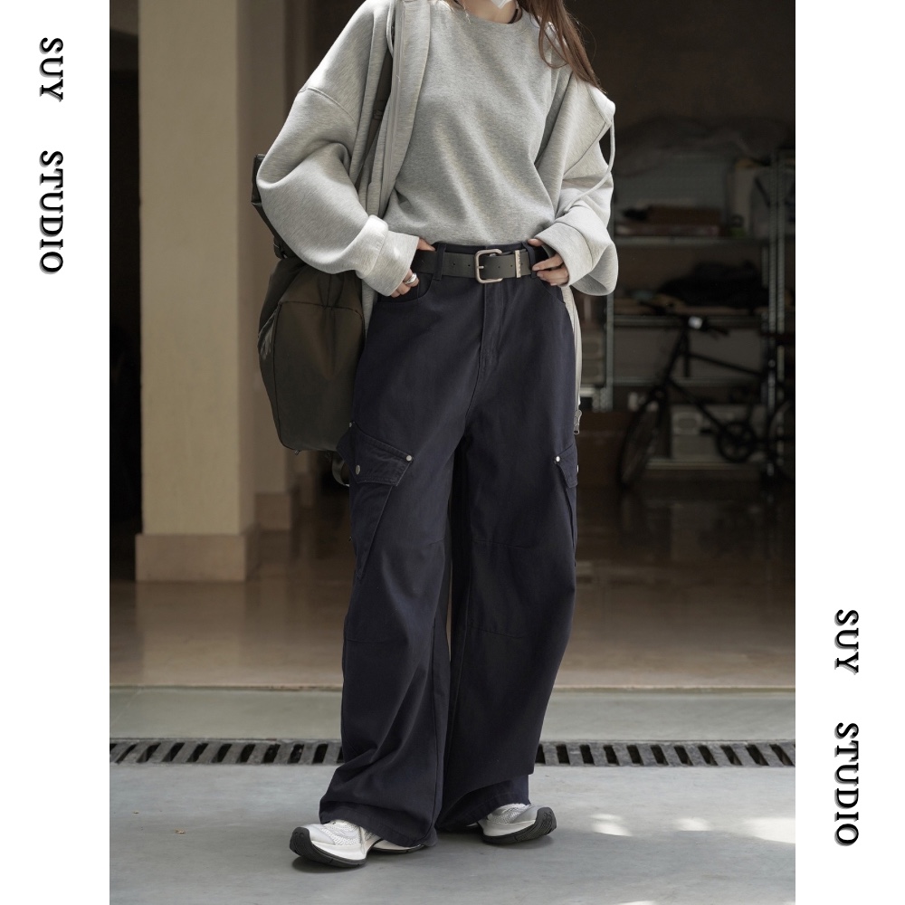 韩系新款小个子遮肉显瘦工装裤子