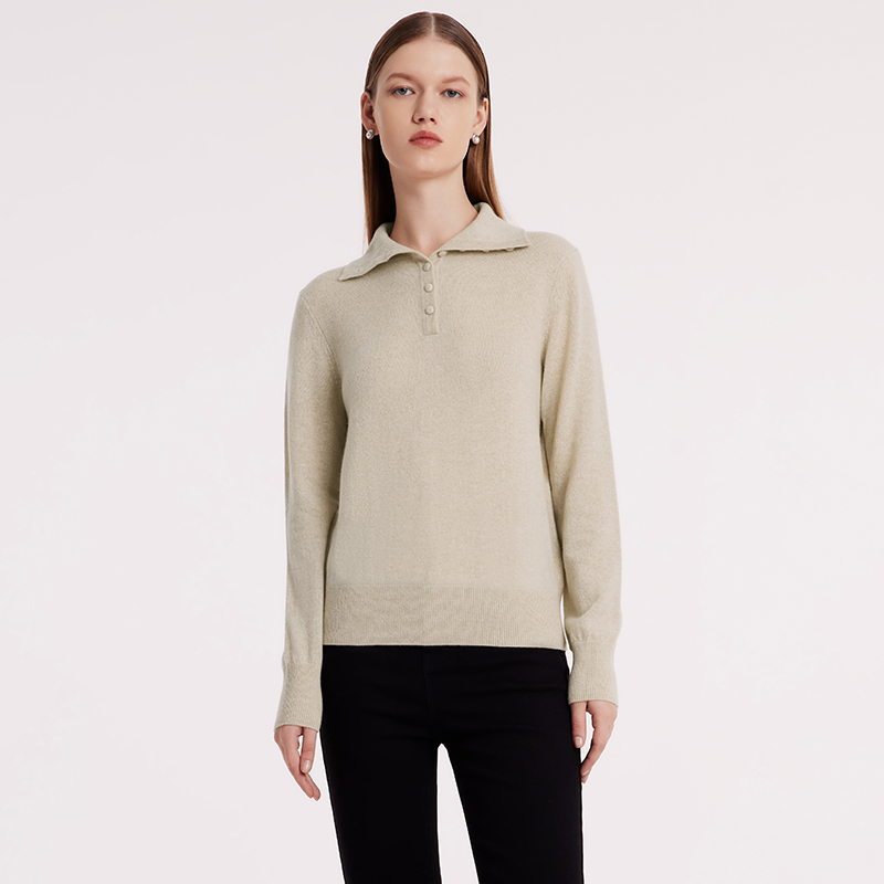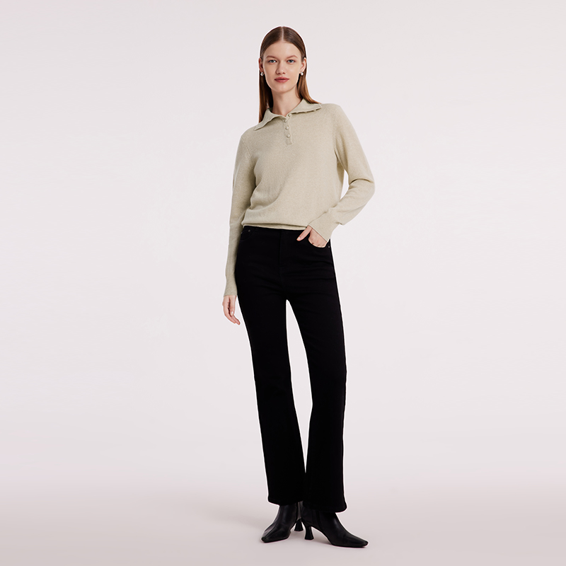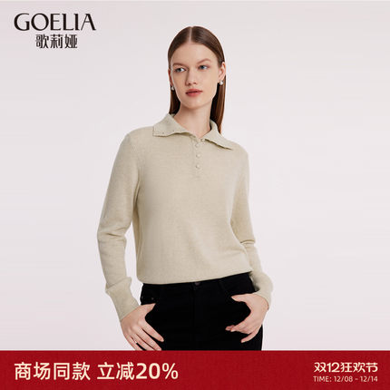歌莉娅羊绒衫女100纯羊绒冬季新款设计感翻领毛衣套头衫1BCL5J030