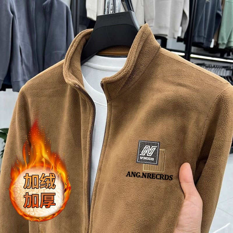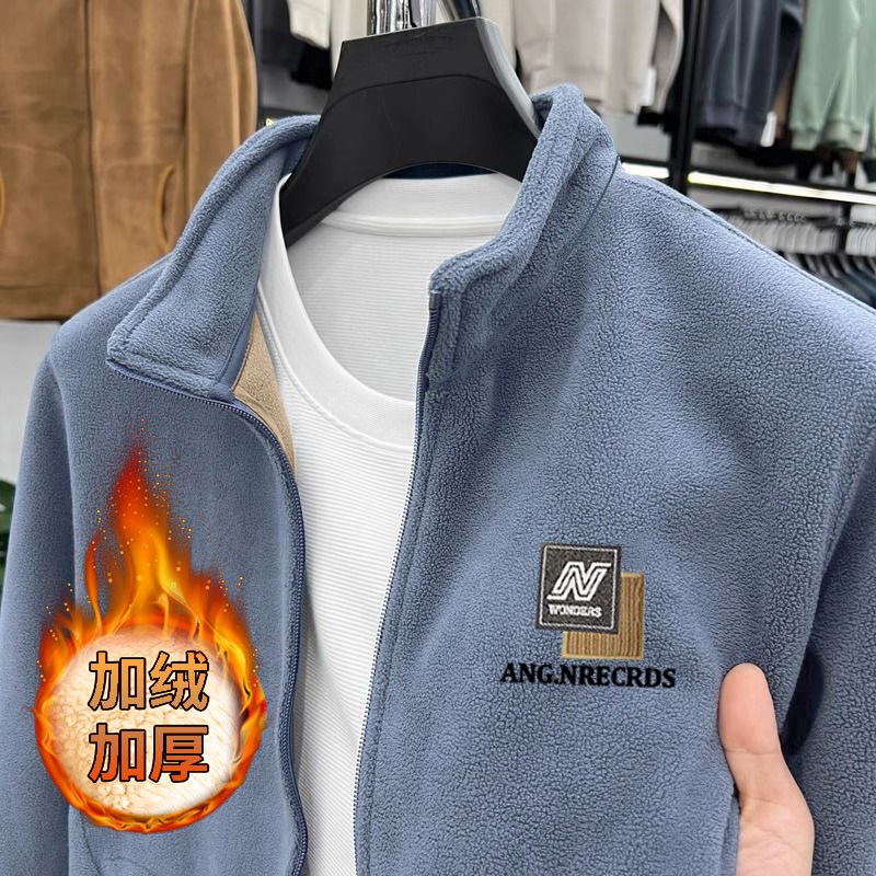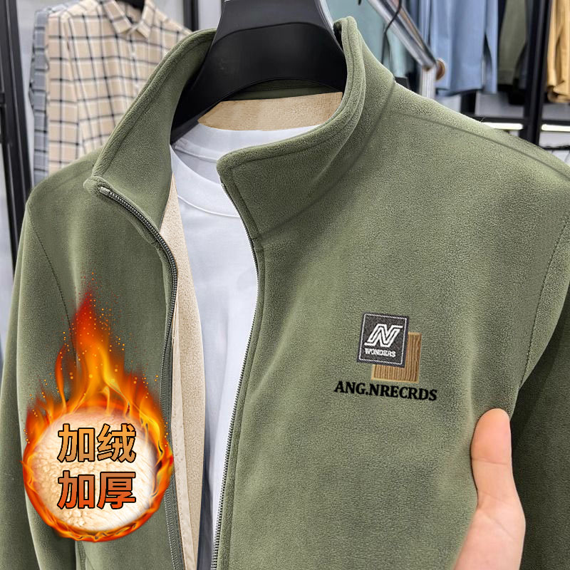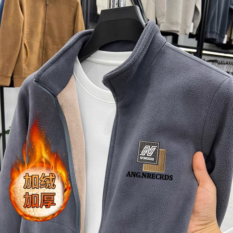 巧琳云秋冬季男士奥粒绒卫衣开衫立领外套双面摇粒绒夹克加厚保暖