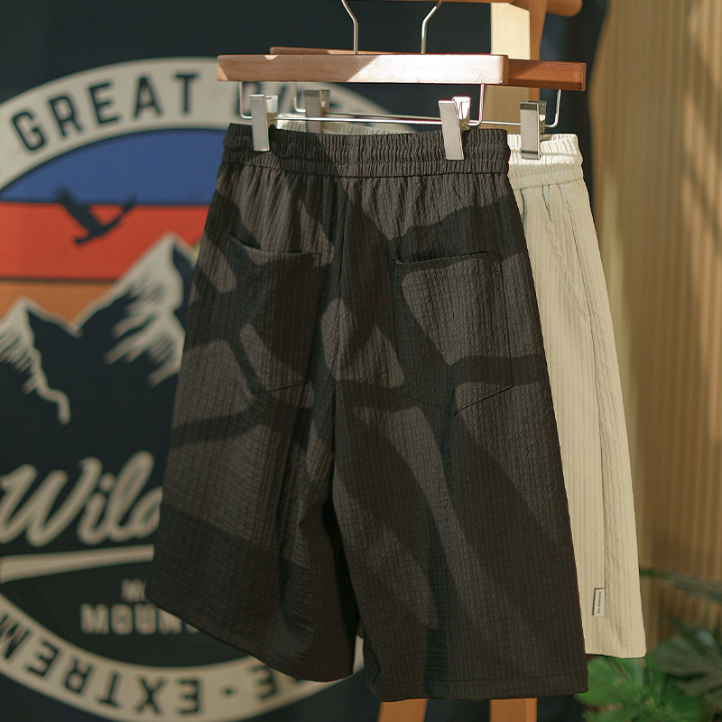 【特轻泡泡纱】麒麟先生夏季日系纯色休闲短裤男简约抽绳五分裤子