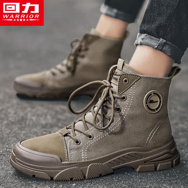 回力马丁靴男冬季休闲高帮登山作战靴户外骑行露营帆布轻便工装鞋