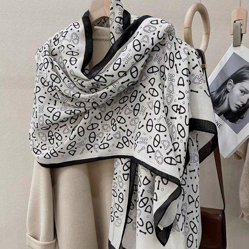 2025新款棉麻围巾女印花千鸟格时尚长款披肩百搭围脖豹纹保暖网红