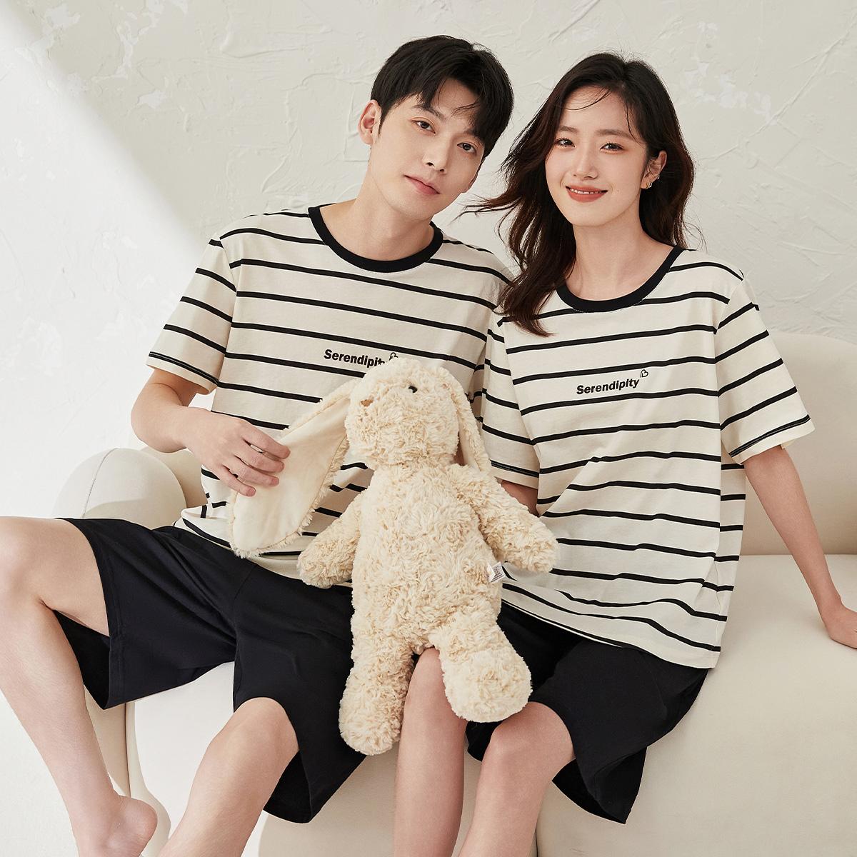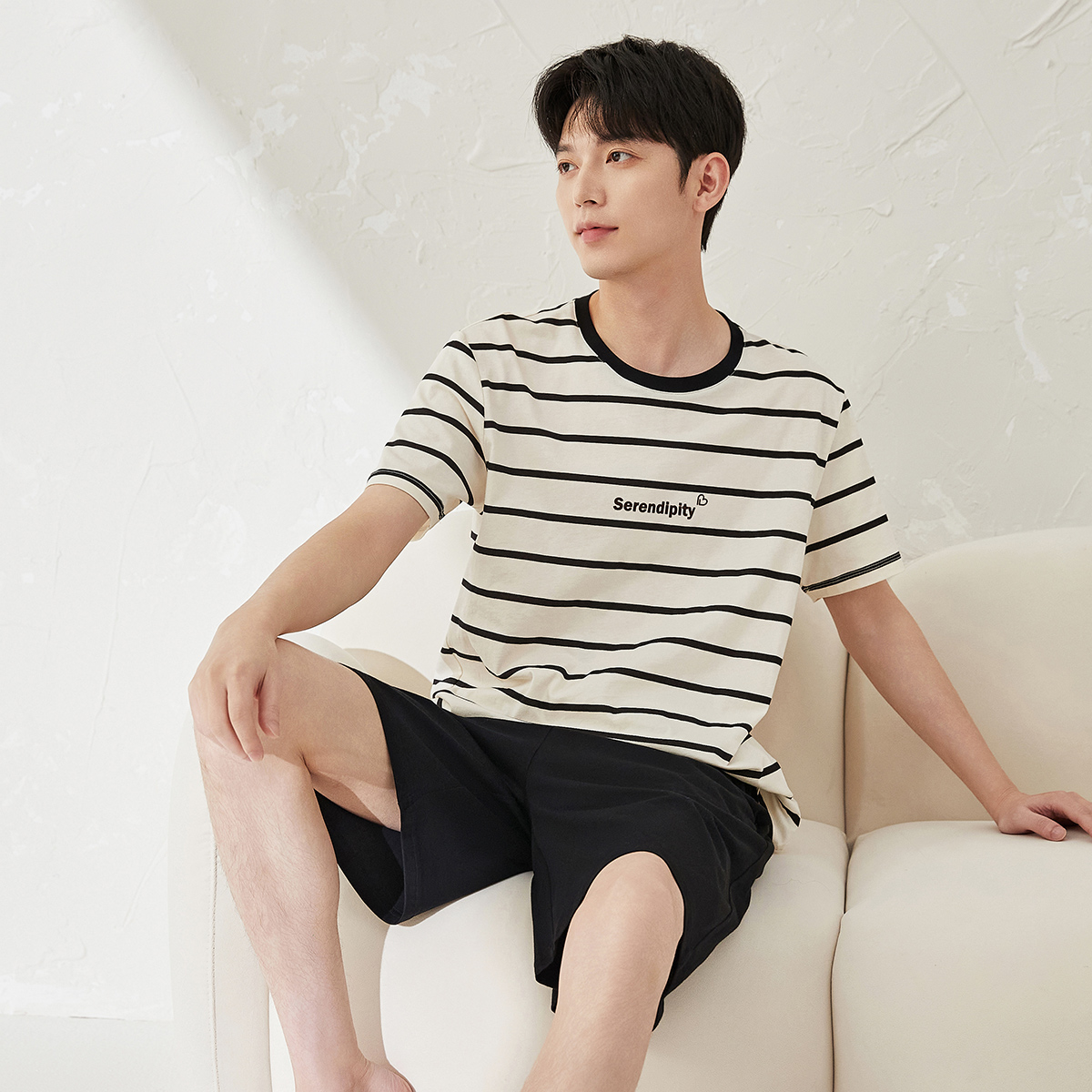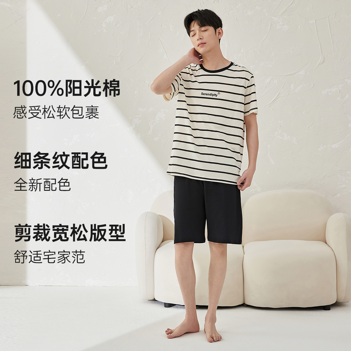 顶瓜瓜100%纯棉男士睡衣夏季条纹家居服套装短袖短裤男款2025新款