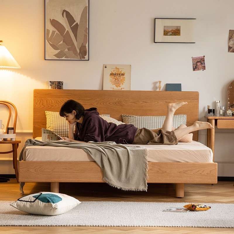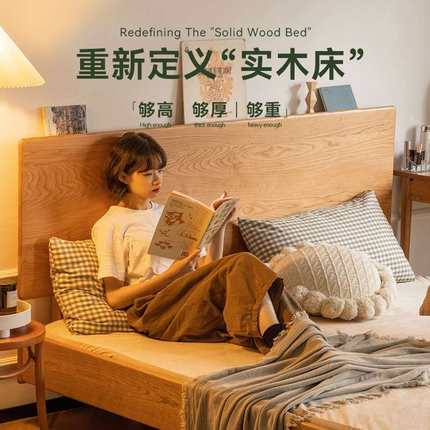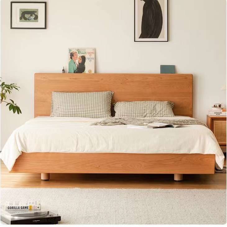 北欧实木床简约樱桃木1.5米单人床日式现代原木1.8米双人床悬浮床