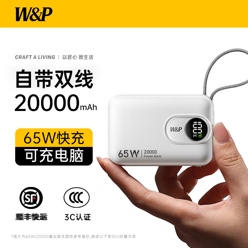 【3C认证充电宝可上飞机】WP2026新款自带线20000毫安大容量65W快充标识适用iPhone17手机华为苹果笔记本电脑